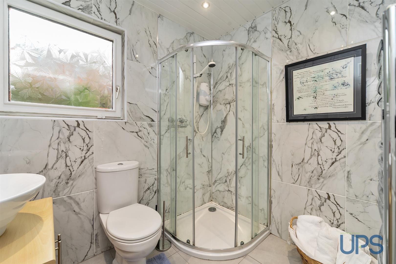 On the first floor, there are four well-proportioned bedrooms along with a modern shower room, finished with decorative tiling and spotlights.