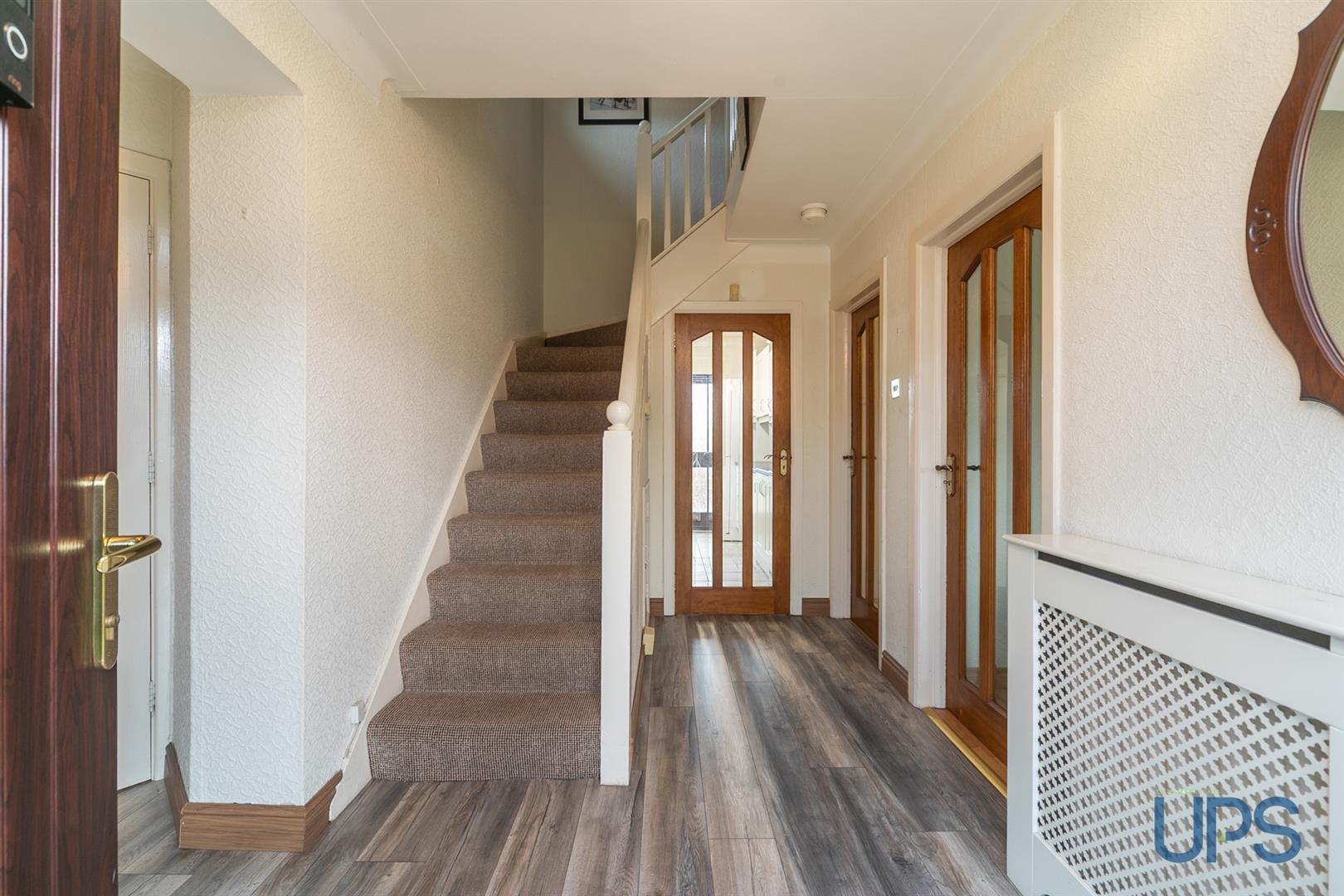 A superior extended, well appointed substantial detached family home that commands an extensive landscaped corner position within this highly regarded established residential area. Four comfortable double bedrooms and two separate reception rooms or alternatively three bedrooms and three reception rooms. Ensuite shower room. Fitted kitchen. White bathroom suite. Feature internal doors. Upvc double glazed windows / eaves and fascia also in Upvc. Oil fired central heating system. Large detached garage. Extensive private landscaped site with feature paviours, neat lawns to boundary hedging and a driveway offering ample car parking with access to rear / double gates. Tremendous doorstep convenience within close proximity to leading Schools, Shops and a short walk to excellent transport links to include the Glider service and the abundance of amenities in Andersonstown that include cafes, restaurants and state-of-the-art leisure facilities. A family home with warmth and character throughout that can only be fully appreciated upon viewing. Well worth a visit. Chain free.