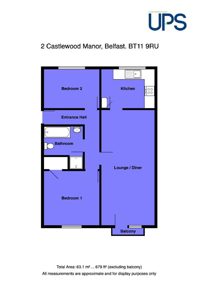 A superb opportunity to purchase this spacious first floor apartment with its own door access commanding a prime residential location and offered with no onward chain. Privately positioned tucked away within this small and highly sought after development with walking distance to the Finaghy train station providing an easy commute to the City Centre as well as walking distance to all the vast amenities on the nearby Upper Lisburn Road, Finaghy and Andersonstown, to include leisure facilities, schooling and the motorway network to name a few. Two bedrooms. Good sized living room with upvc double glazed door and Juliet style balcony. Separate fitted kitchen. White bathroom suite with spotlights. Gas central heating system with Worcester gas boiler. Upvc double glazing. Chain free. An apartment with so much potential coupled with this hugely convenient residential location, we have no hesitation in recommending an early viewing to avoid disappointment. A service charge of approximately £55.00 per month, at present, is payable to Charterhouse Management Company. We recommend the purchaser and their solicitor confirm the service charge amount and inclusions. EPC C76