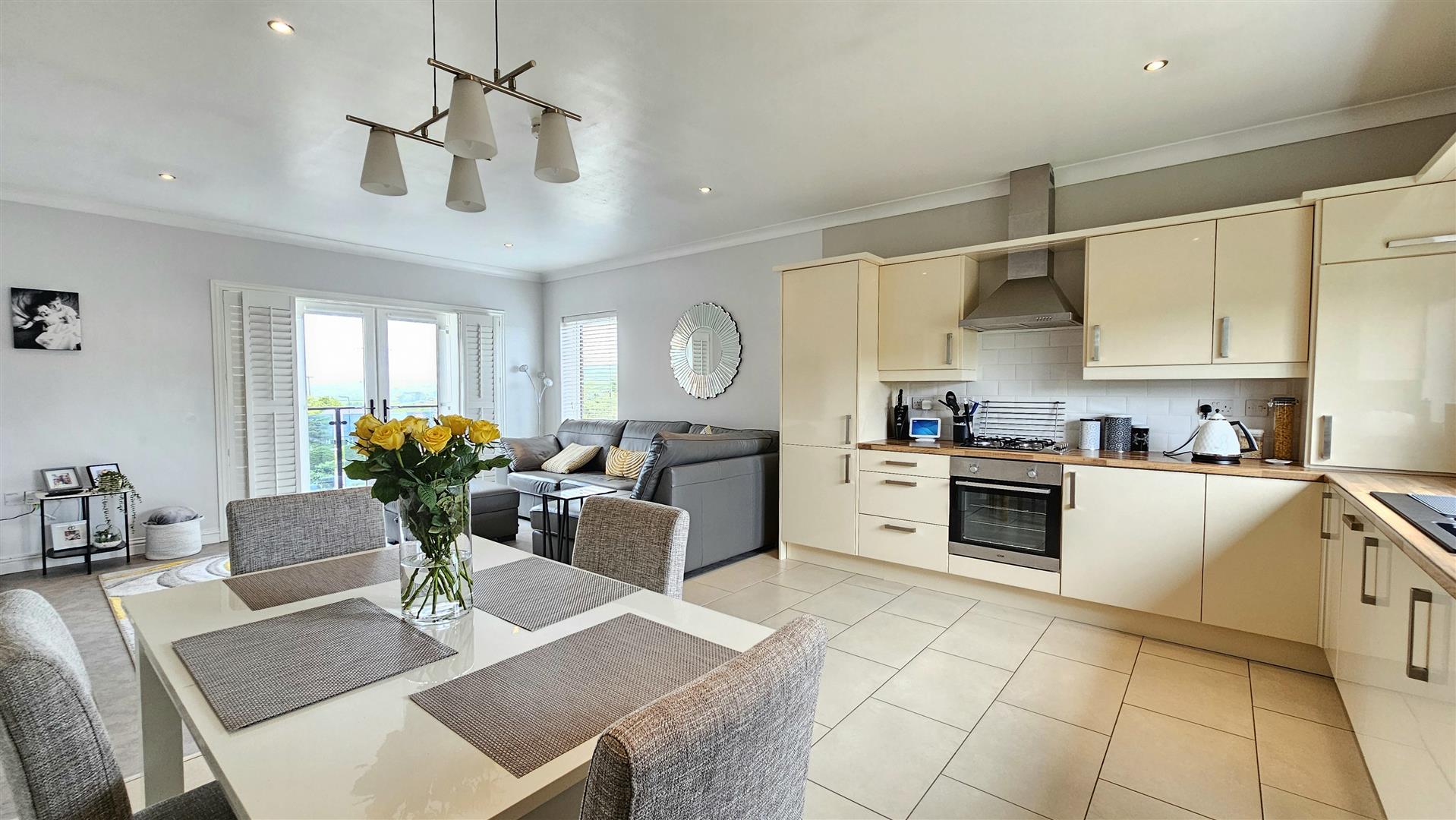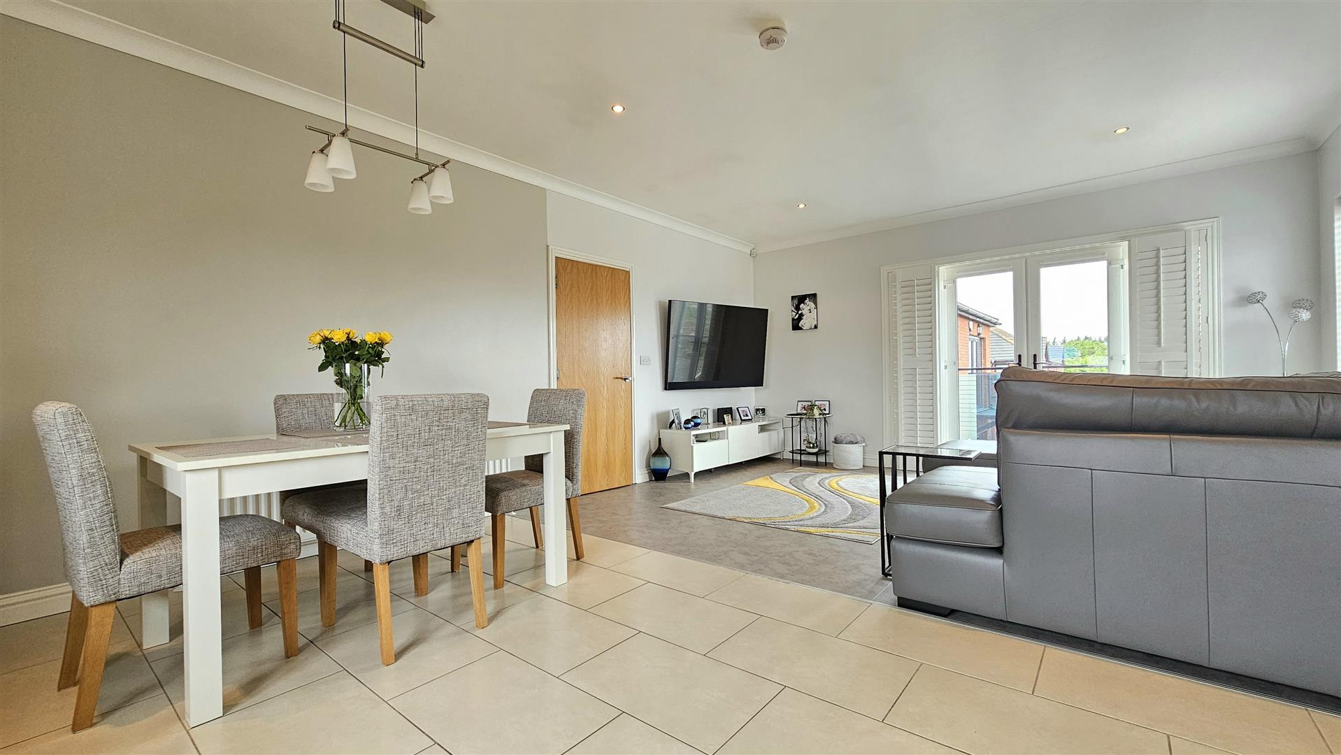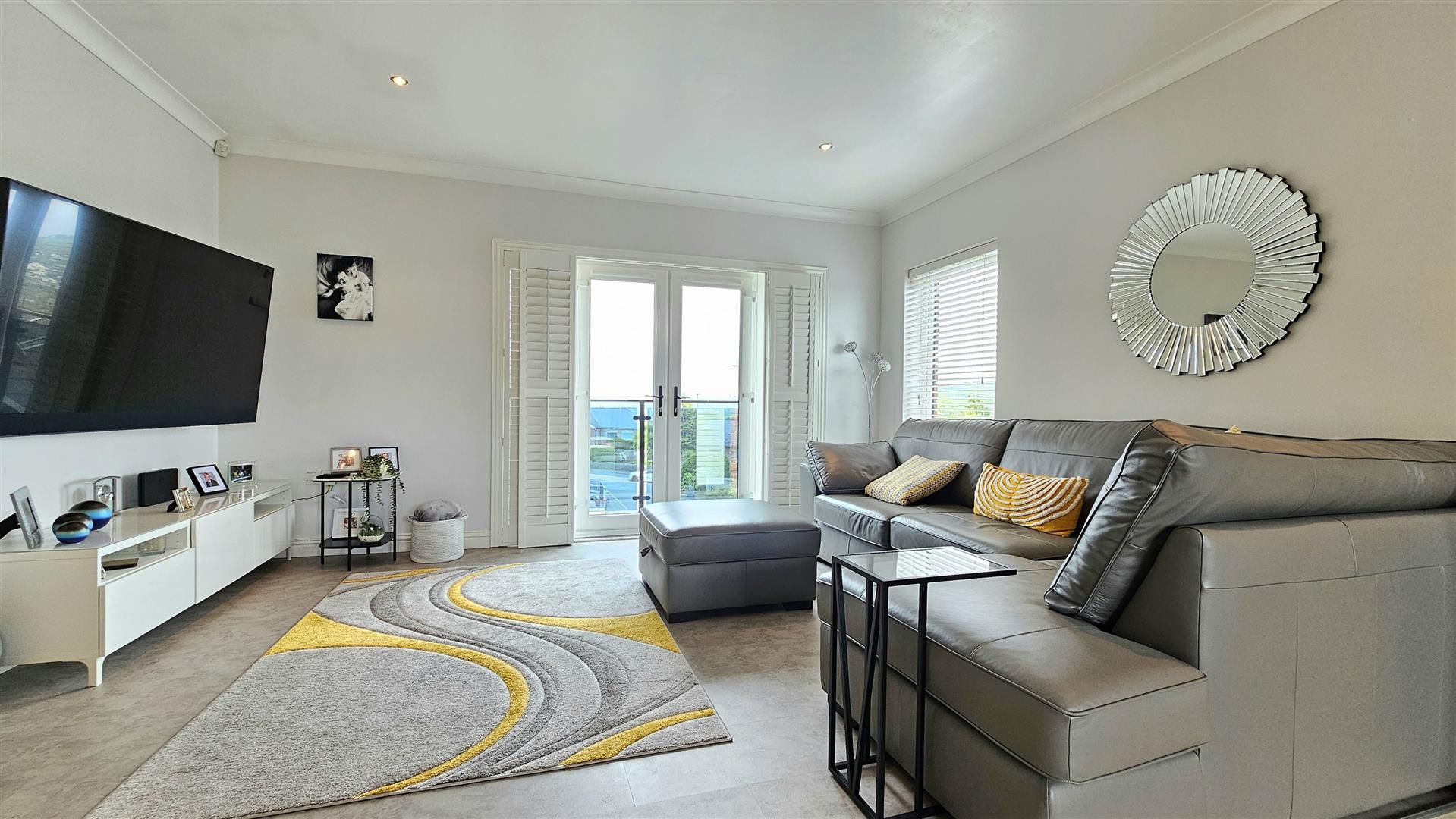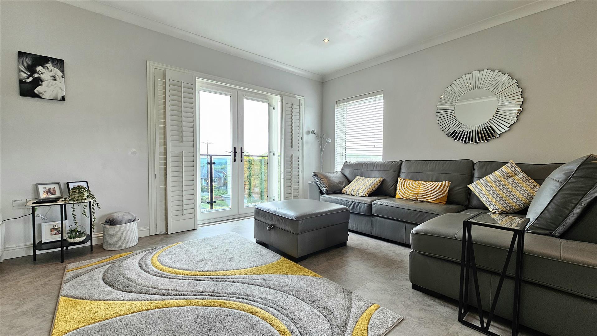 Double doors from lounge to balcony with views over Whitehead and Islandmagee