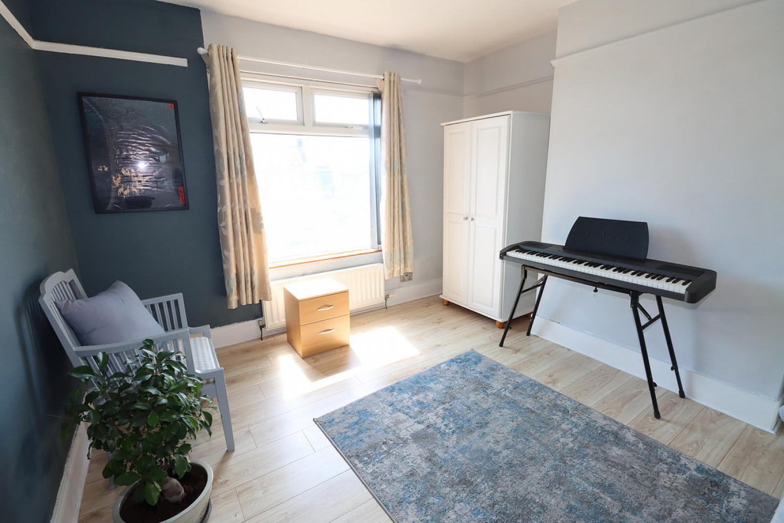 BEDROOM (2) 10' 10" x 10' 8" (3.3m x 3.25m) Laminate wood flooring.