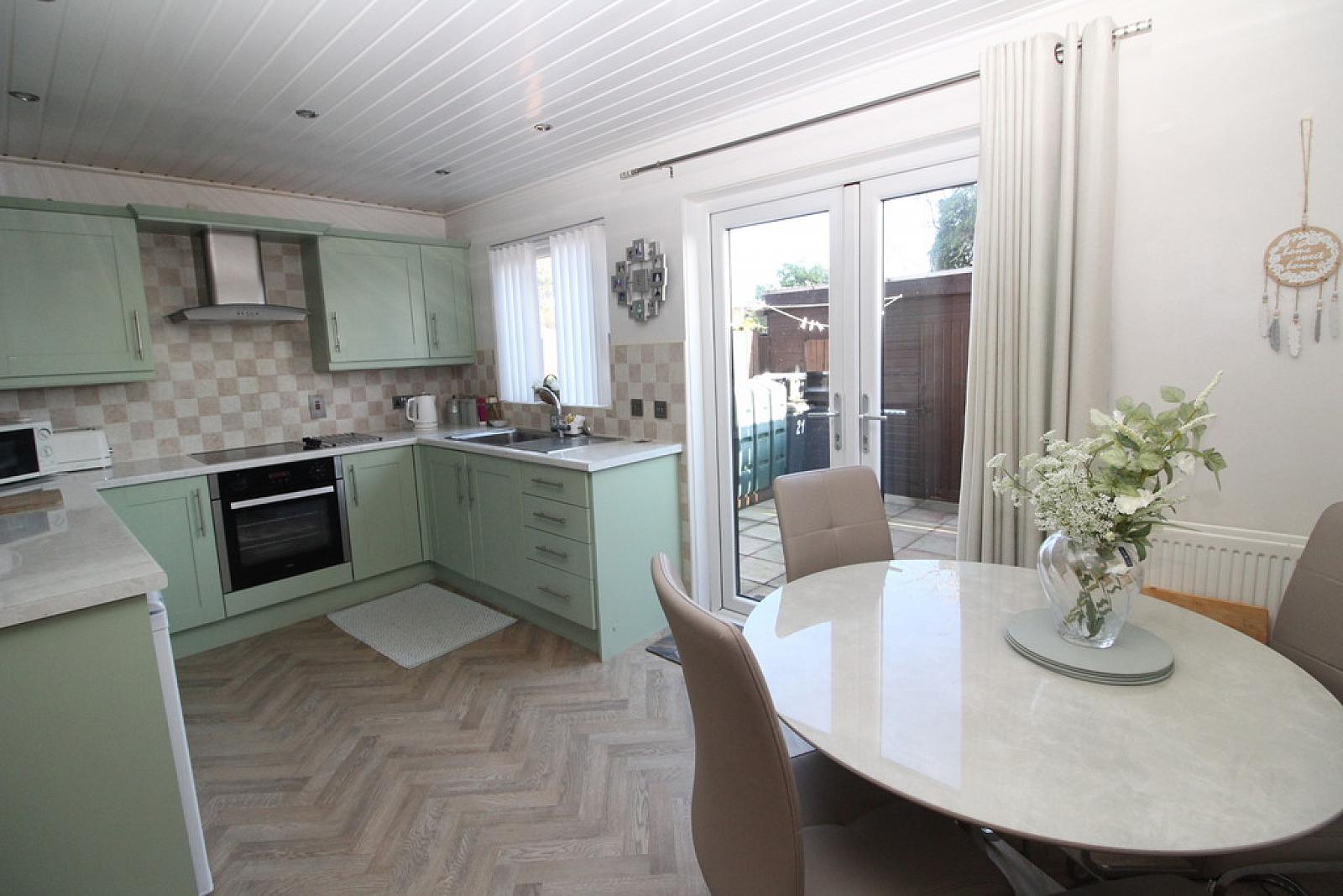 Shaker style fitted kitchen open plan to: