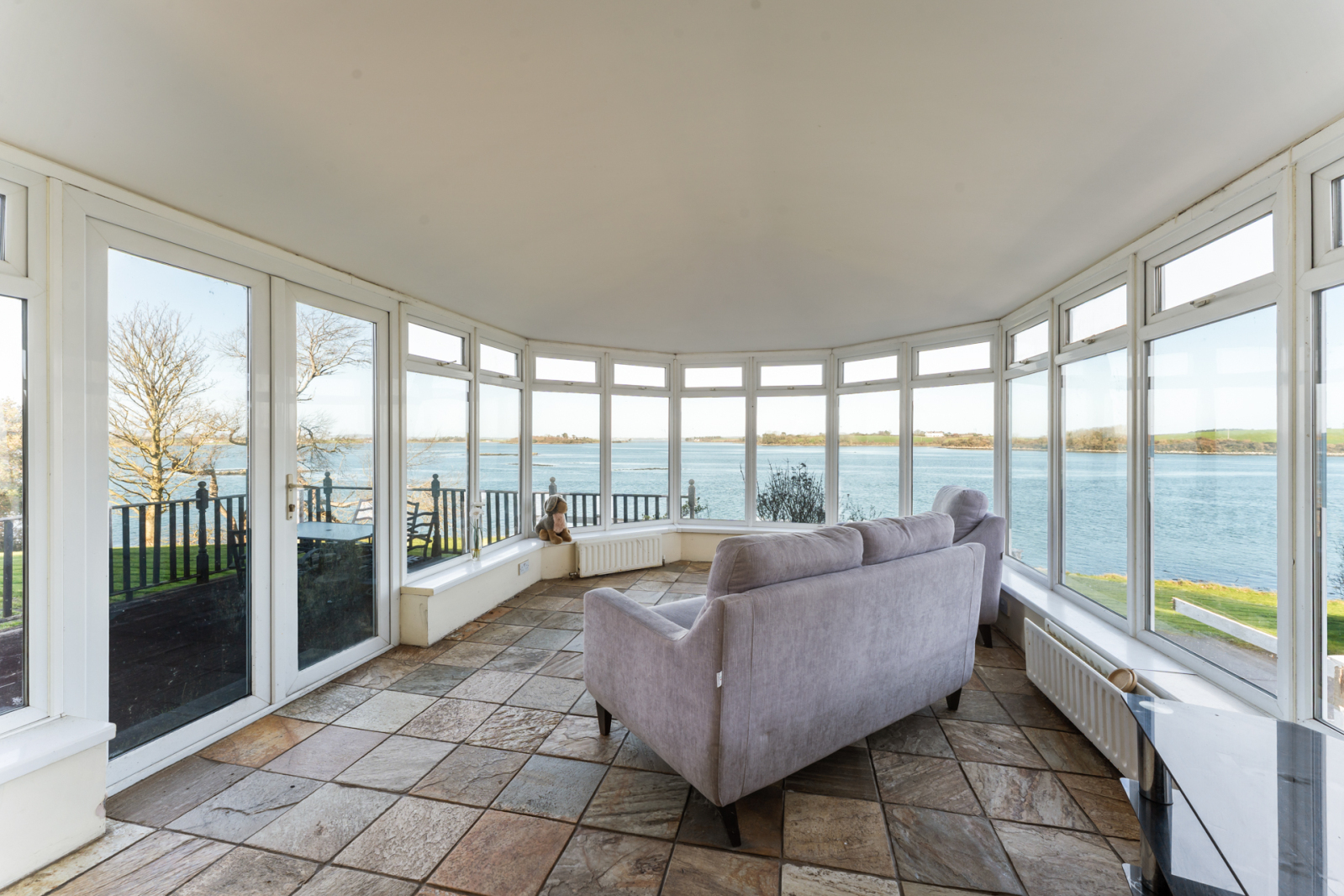 Ceramic tiled floor, far reaching panoramic views over Strangford Lough and Mahee Island.