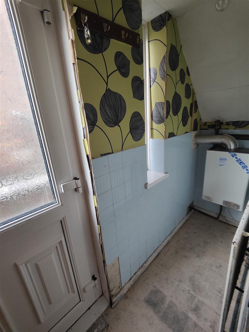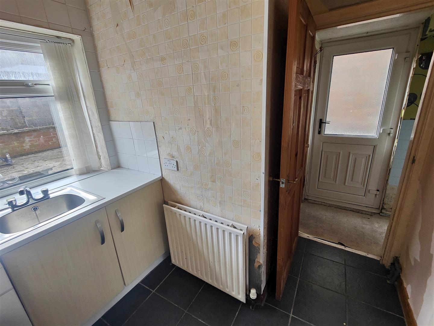 Pvc double glazed door, double panelled radiator, wall mounted gas boiler.