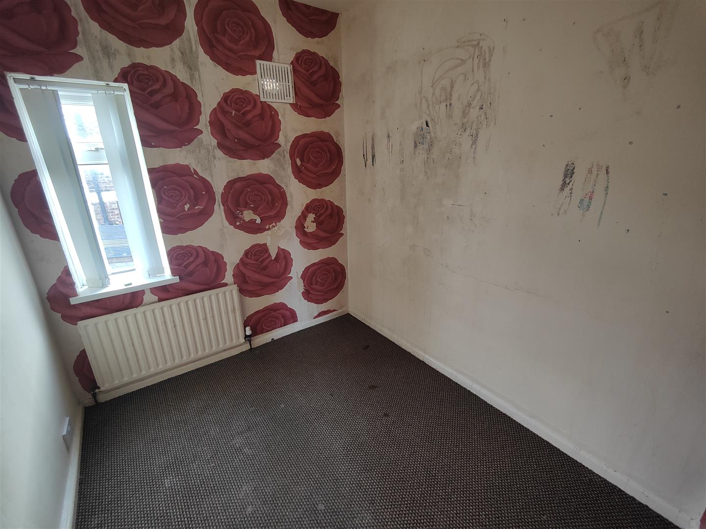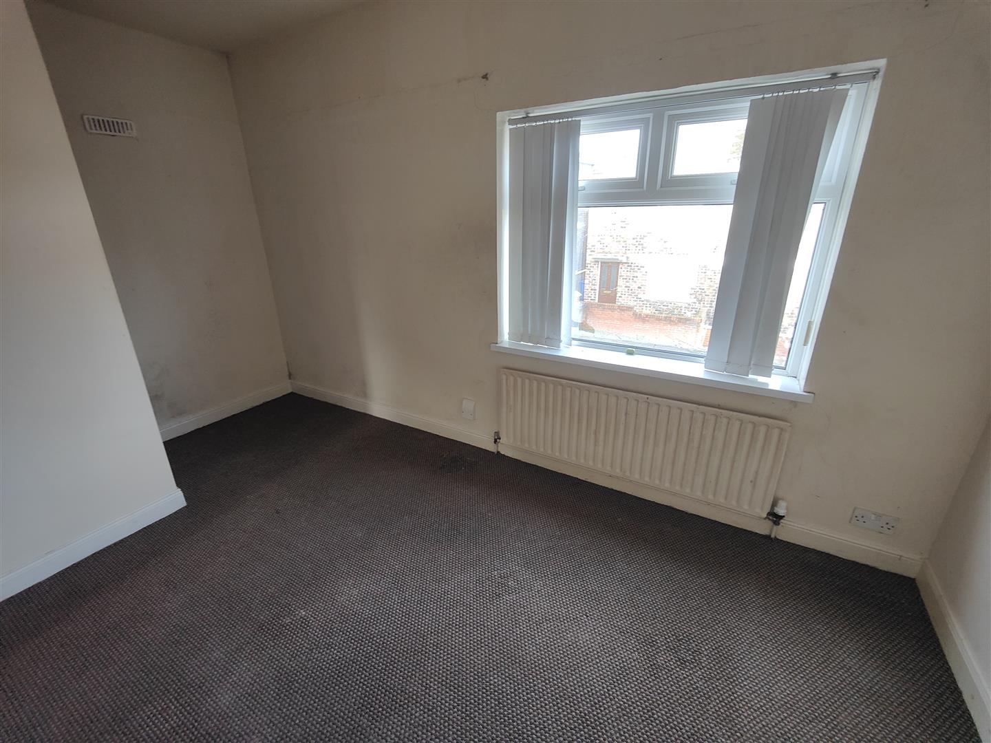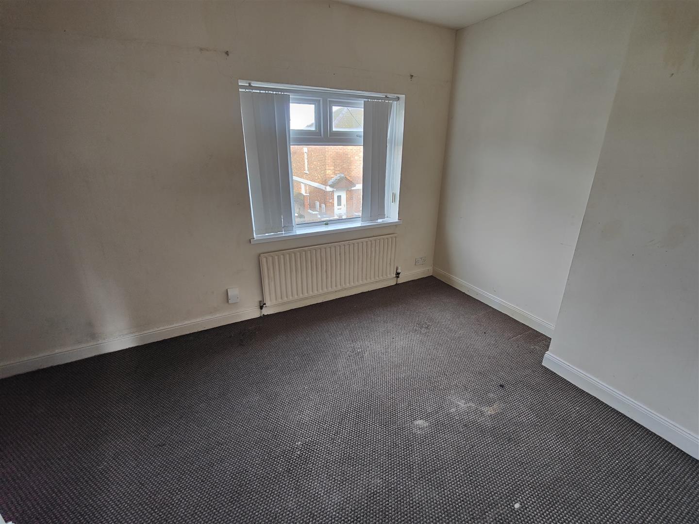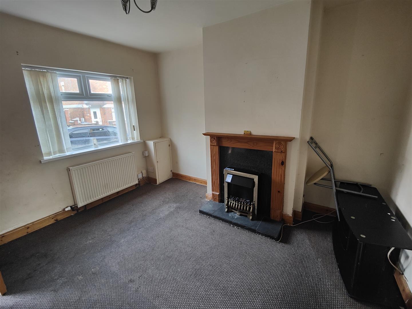 Attractive fireplace with slate hearth, double panelled radiator.