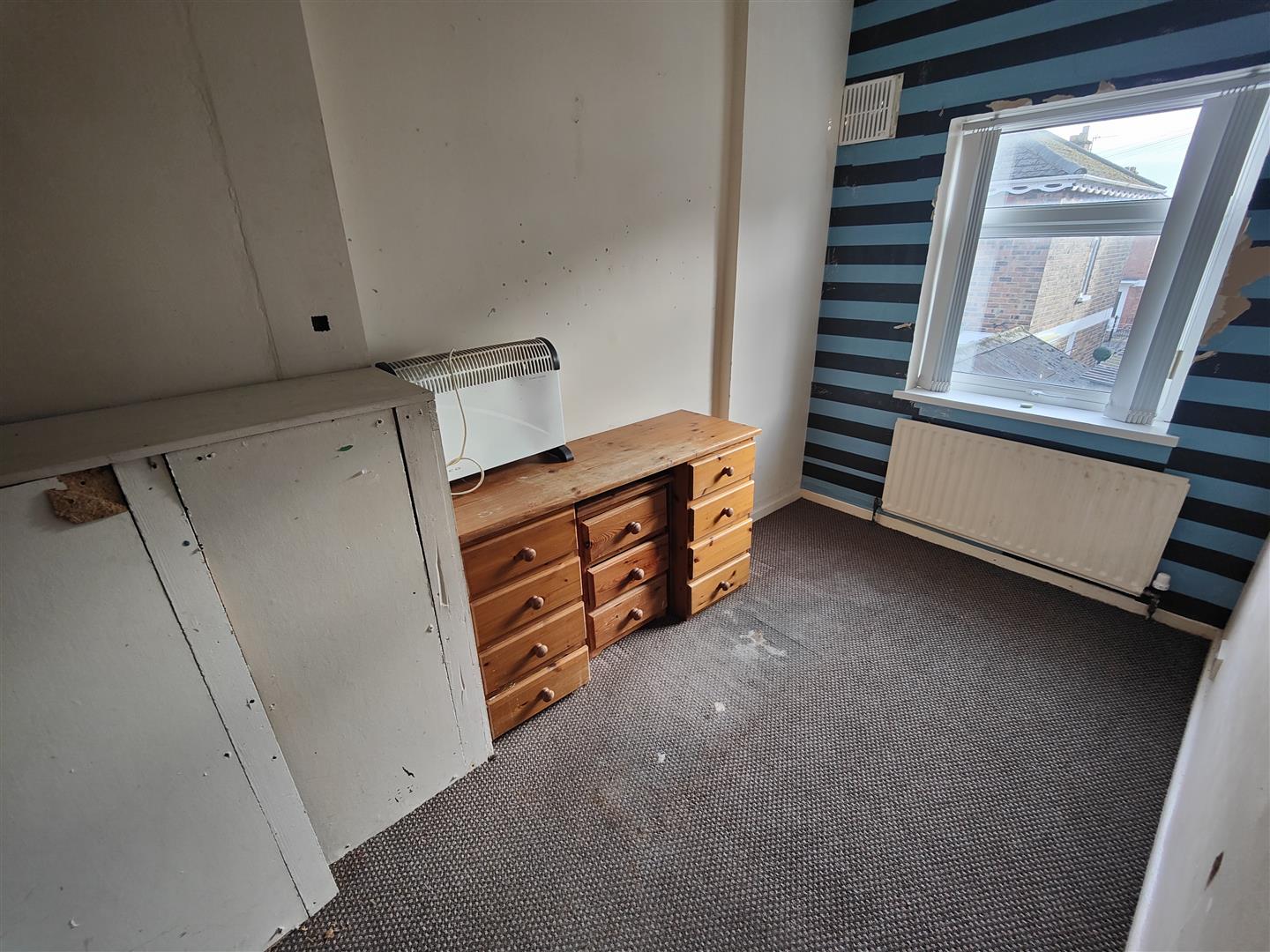 At widest, built-in storage, panelled radiator.