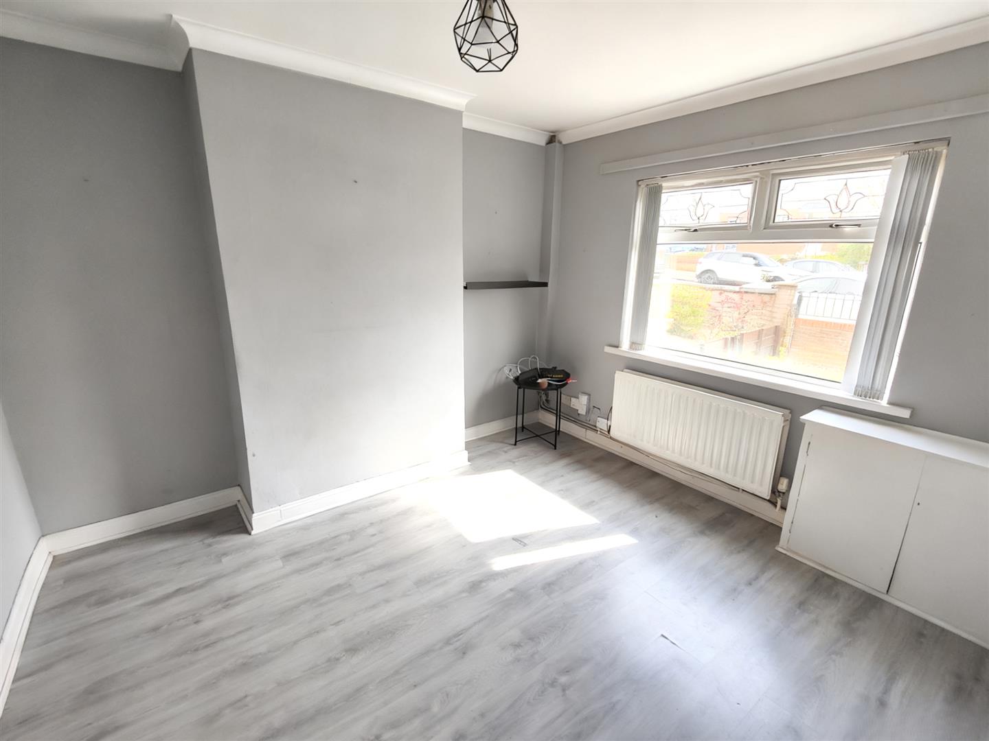 Wood laminate floor, double panelled radiator.
