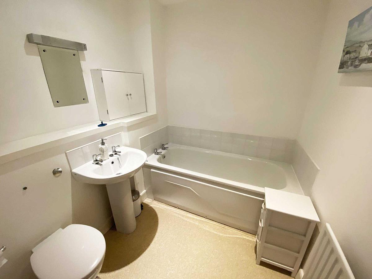 Bathroom - Good size bathroom with white bath suite, newly decorated with vinyl flooring.
