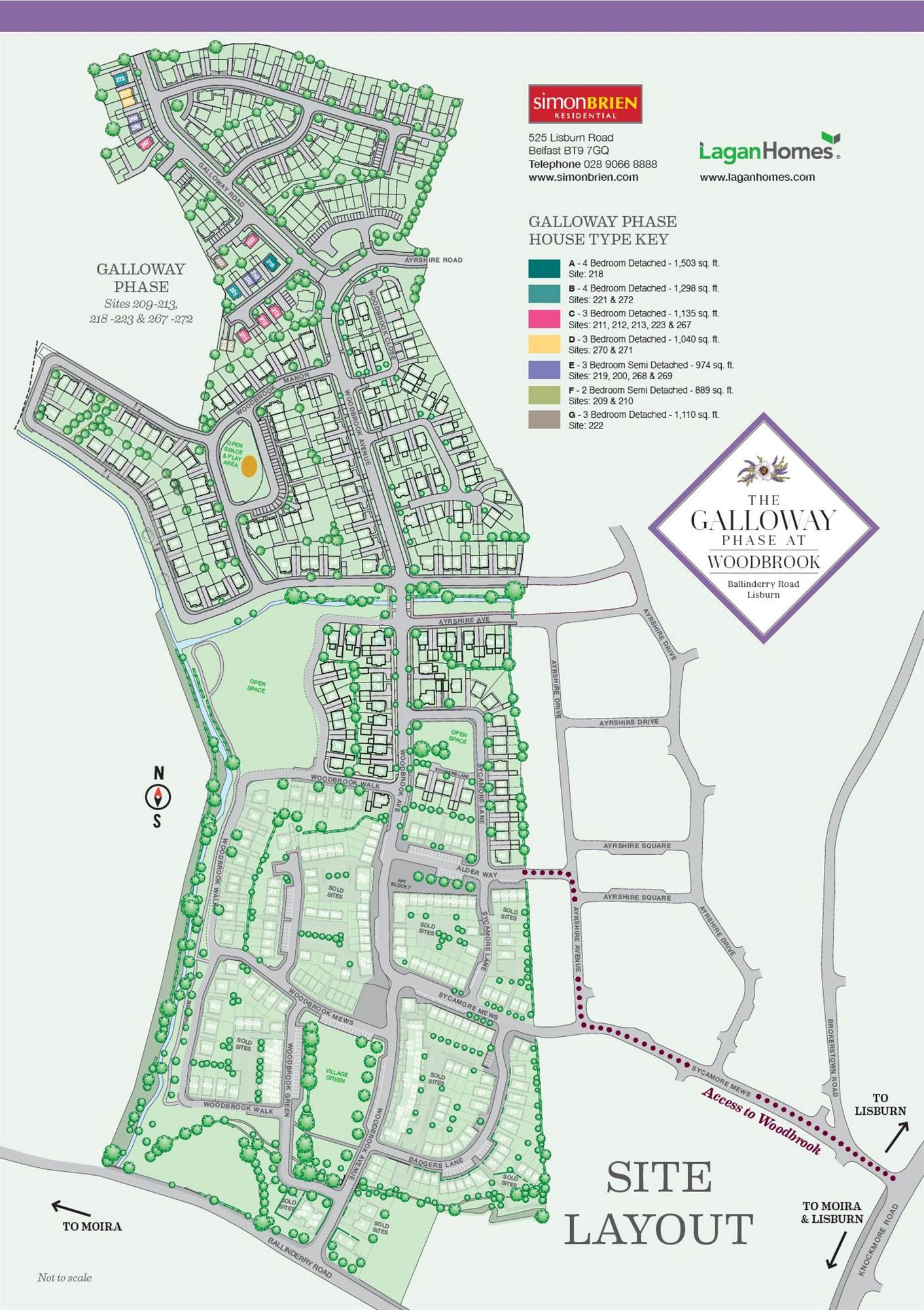 The Perfect Location In So Many Ways The Gallowway Phase At Woodbrook Village is situated within the picturesque leafy suburbs of West Lisburn and is bounded by the Ballinderry Road to the South, Brokerstown Road to the East and Glenavy Road to the North. To the West is open countryside, stretching out beyond the development"s landscaped streams, woodland and hedgerows. Lisburn City Centre is just minutes away by car where you"ll find some of Northern Ireland"s finest shops, schools and recreational facilities.