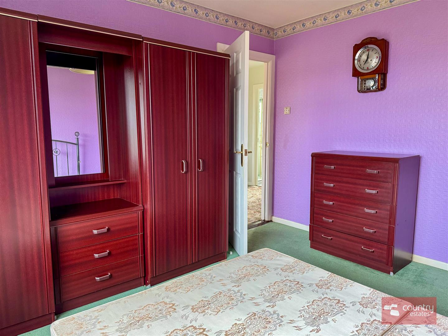 Neat well maintained garden to front stocked with a variety of shrubs. Twin gates to side leading to driveway with parking for a number of vehicles.