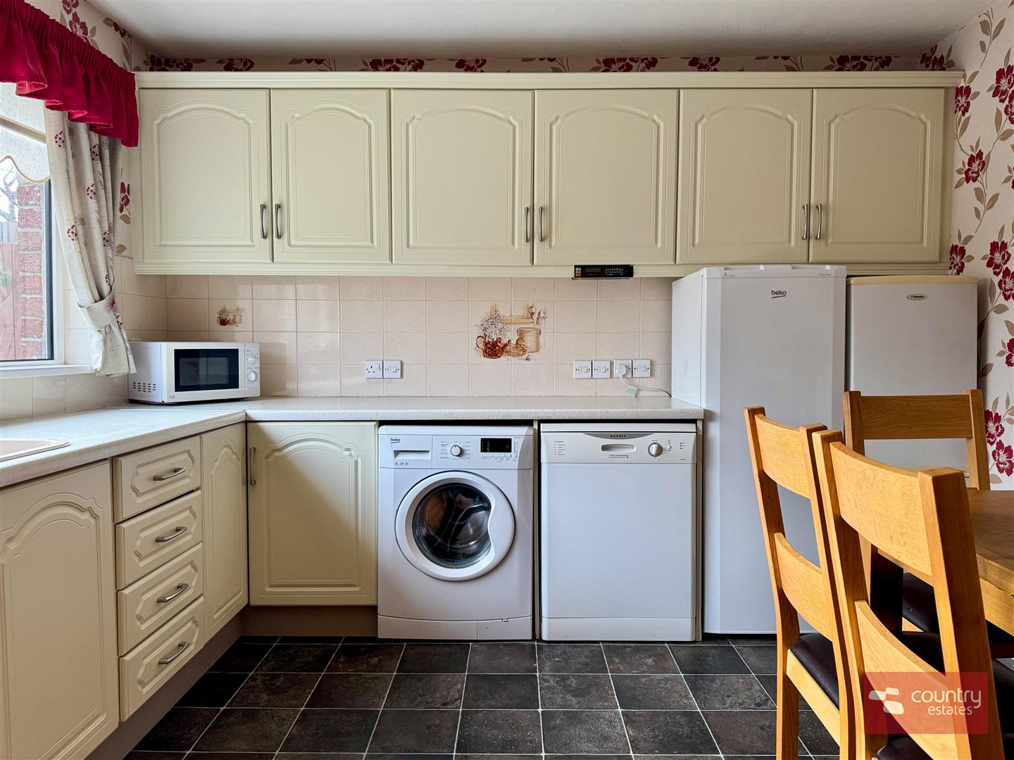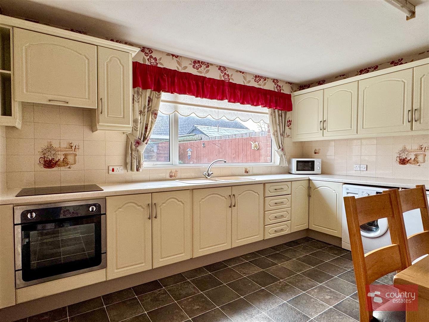 Equipped with a comprehensive range of high and low level fitted units with contrasting work surfaces. Inlaid ssingle drainer sink unit. Integrated oven with separate four ring hob and concealed overhead extractor fan. Plumbed for washing machine and dish washer. Part tiled walls. Large larder storage cupboard.