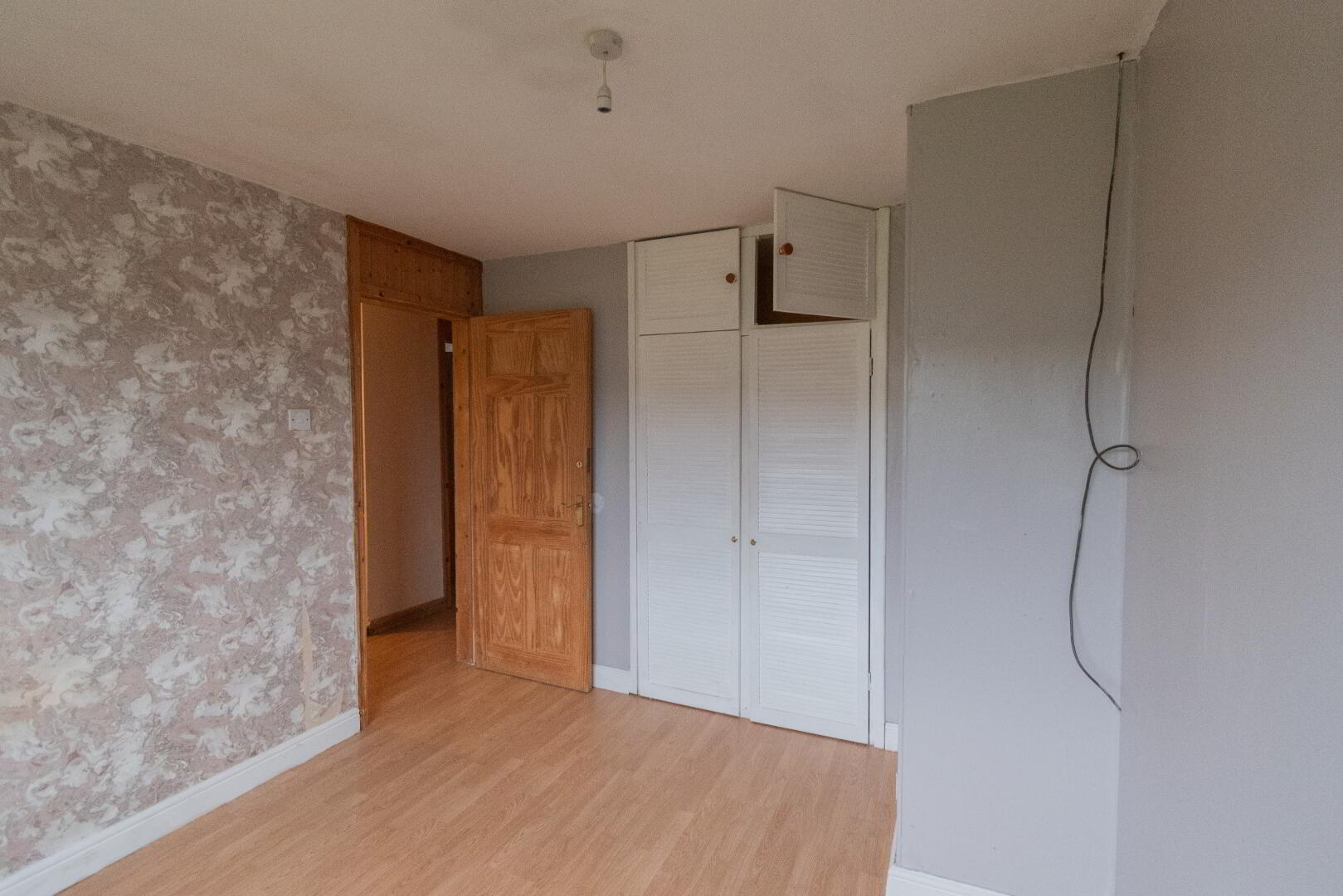 BEDROOM TWO with laminate flooring and rear aspect, built-in storage.