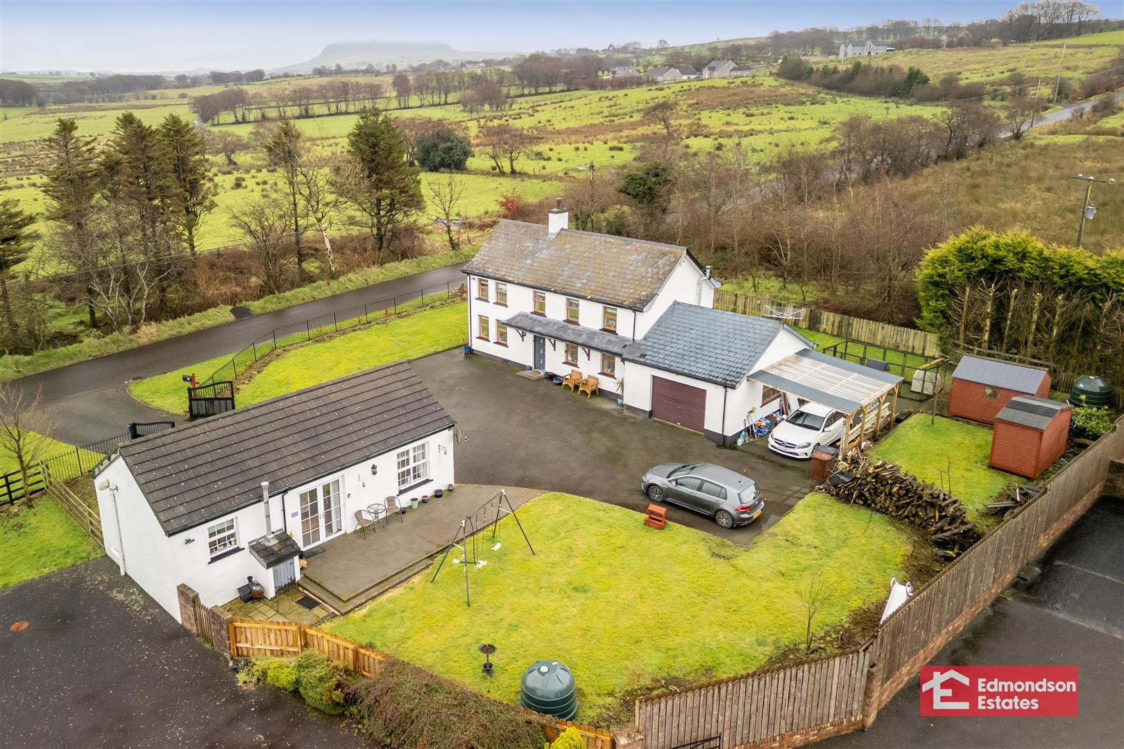 Edmondson Estates are delighted to bring to market this modernised, detached farmhouse style family home with additional detached annex, set just off the Deerfin Road, Broughshane, Ballymena. Sitting on a large private site with far reaching countryside views to the front, this property is benefits from a rural setting but is only minutes drive to a wide array of amenities including shops, schools, cafes, leisure facilities and local transport networks. An ideal property for the young family, those requiring additional accommodation for a family member or those looking to generate an additional income from home.