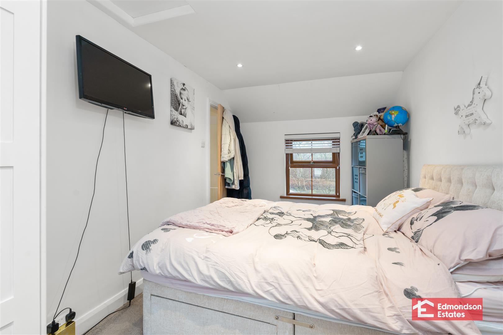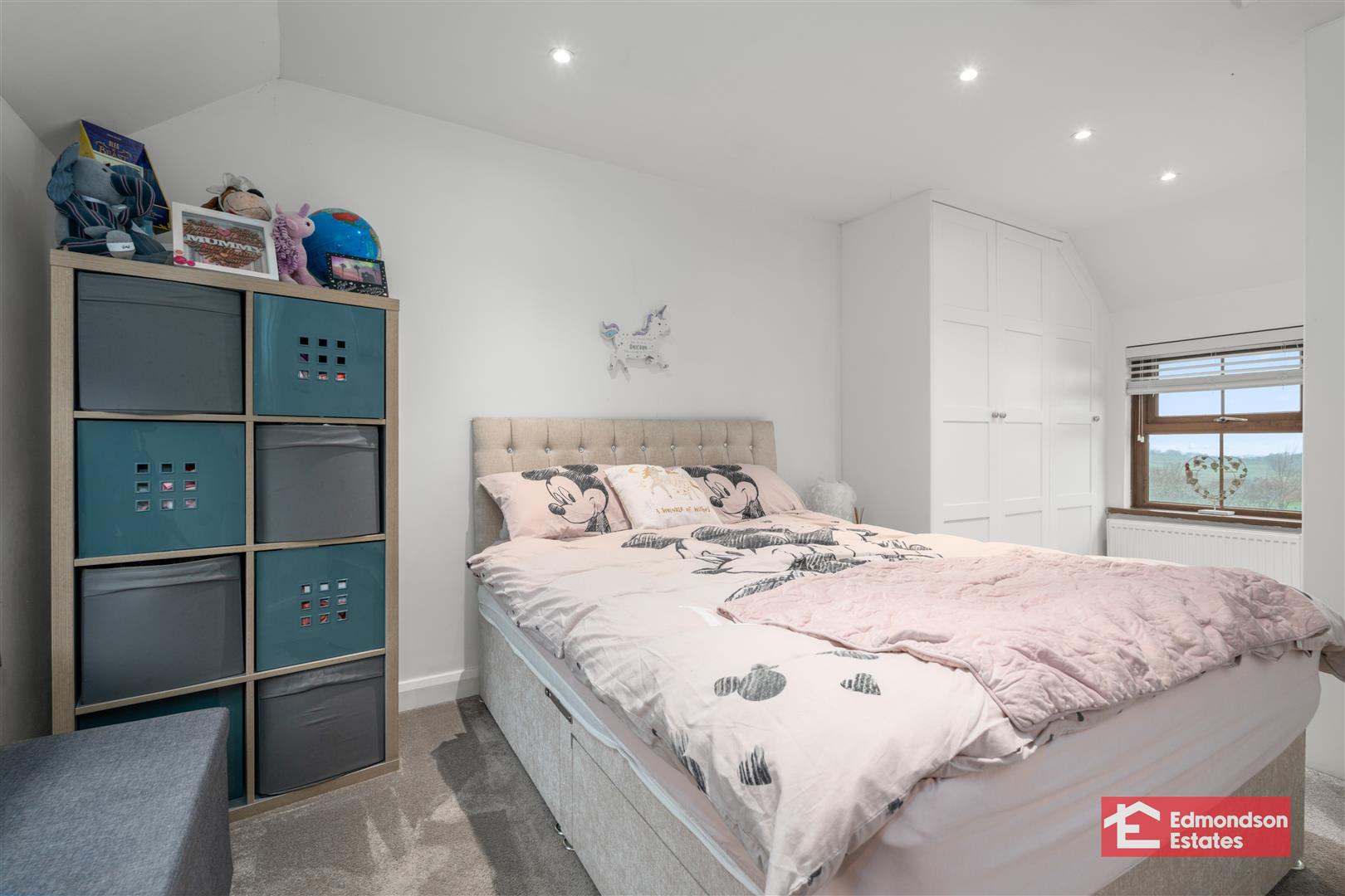 Integrated wardrobes. Dual aspect windows. Far reaching views over the surrounding countryside.
