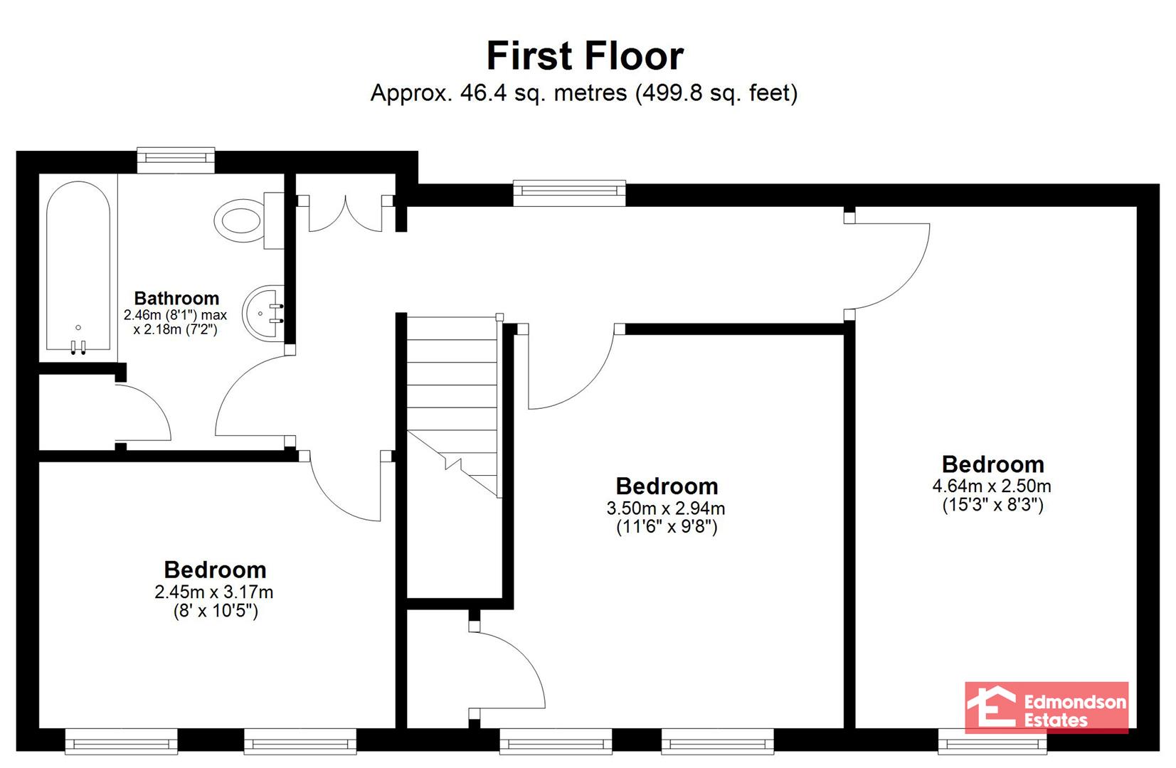 BEDROOM 2 15'3 X 8'3 (4.65m X 2.51m)