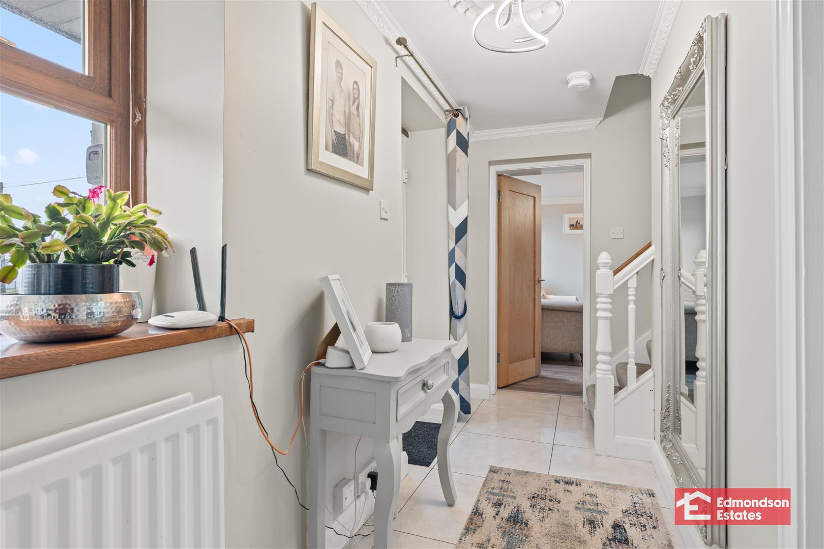 PVC double glazed composite front door. Stairwell to first floor. Tiled floor.