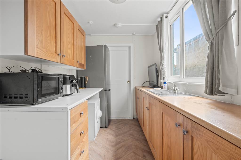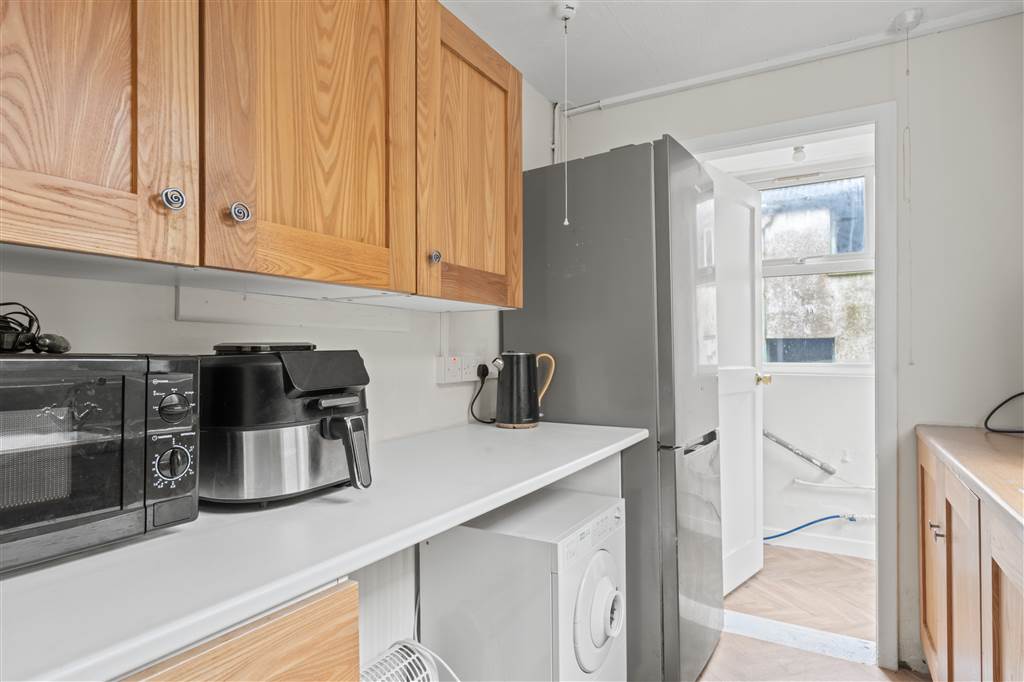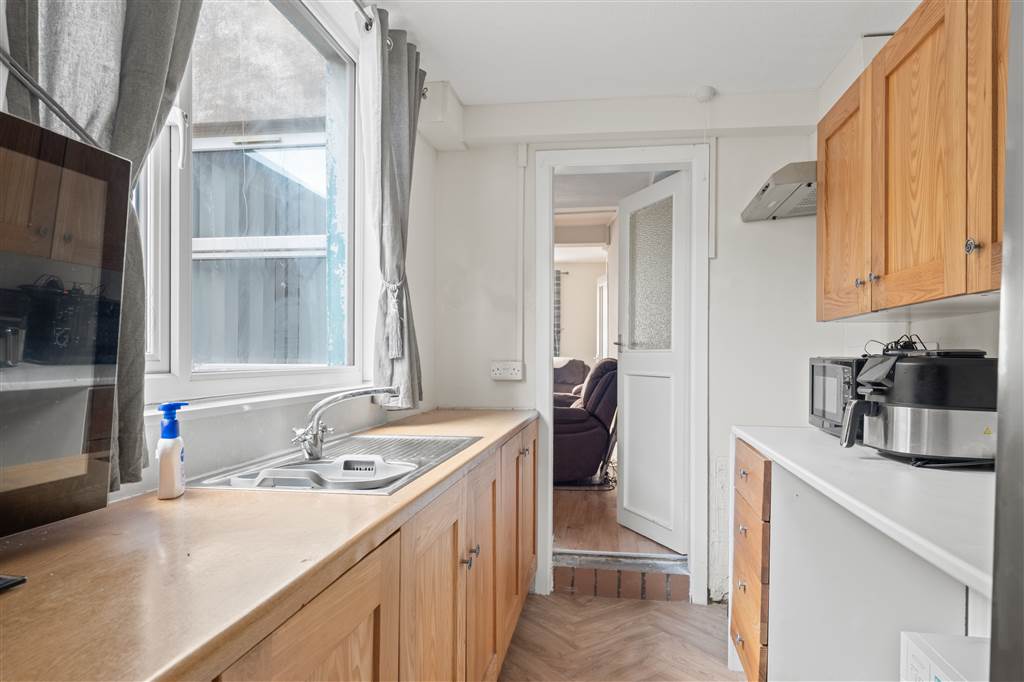 With fitted units. Plumbed for washing machine. Hardwood door to rear.