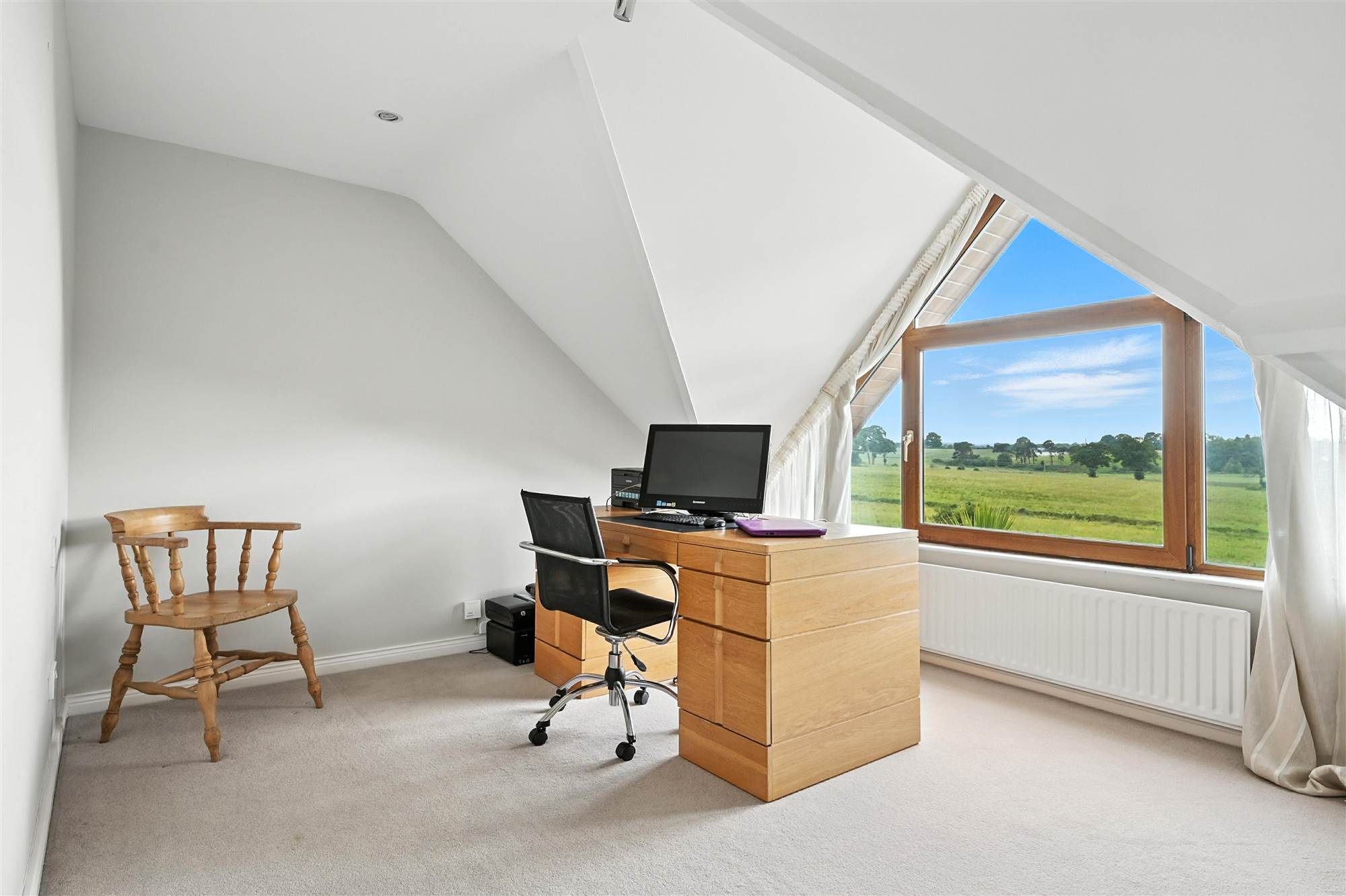 With gallery overlooking the hall below and open countryside views. Generous walk in hot press storage with access to under eaves storage to the rear of the property. Hatch to loft accessed via loft ladder, recessed lighting.