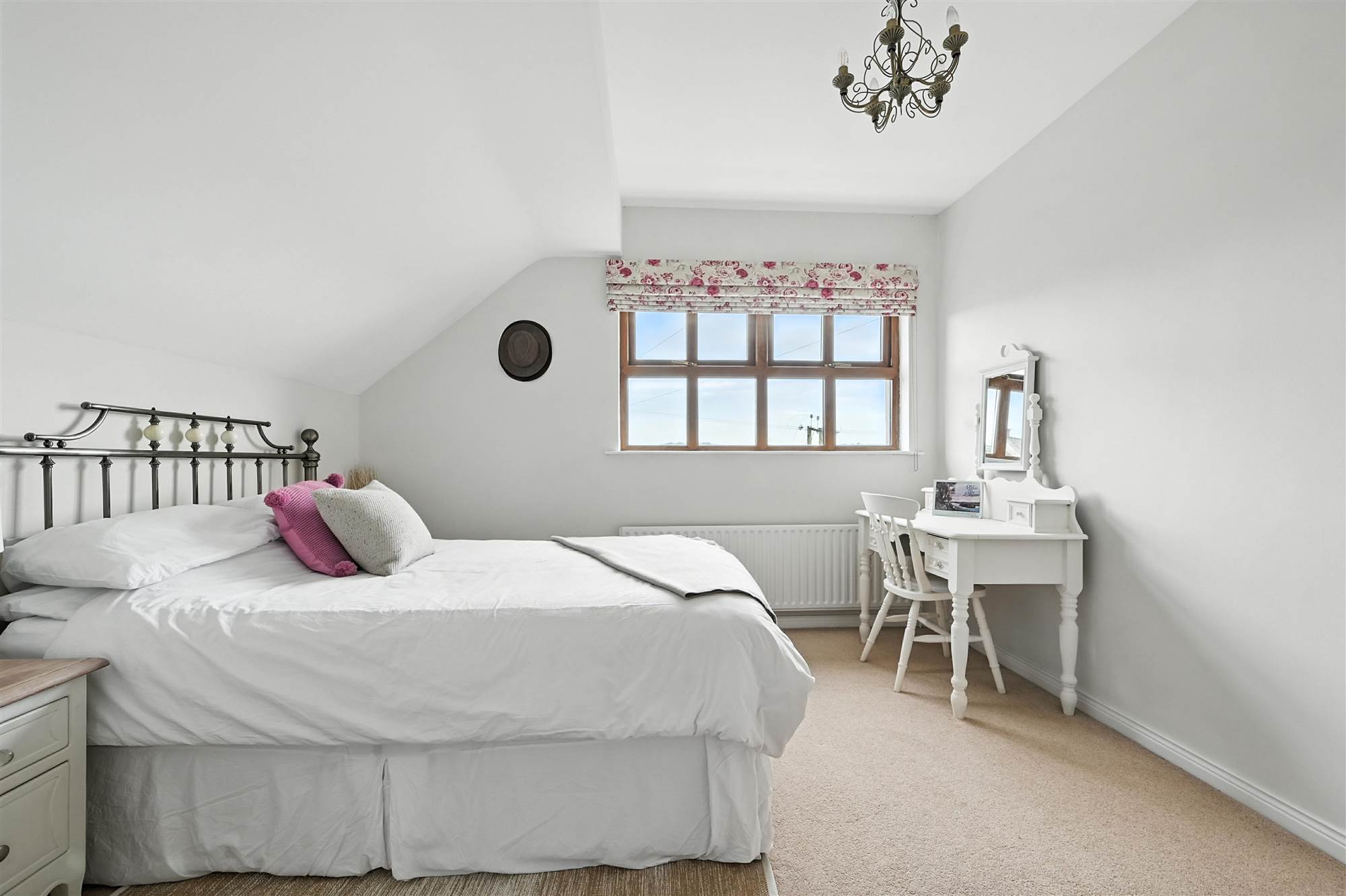 South facing double bedroom with double aspect windows to the front and side providing countryside views. Generous eaves storage divided into 3 cupboards with one hanging and two fully shelved cupboards.
