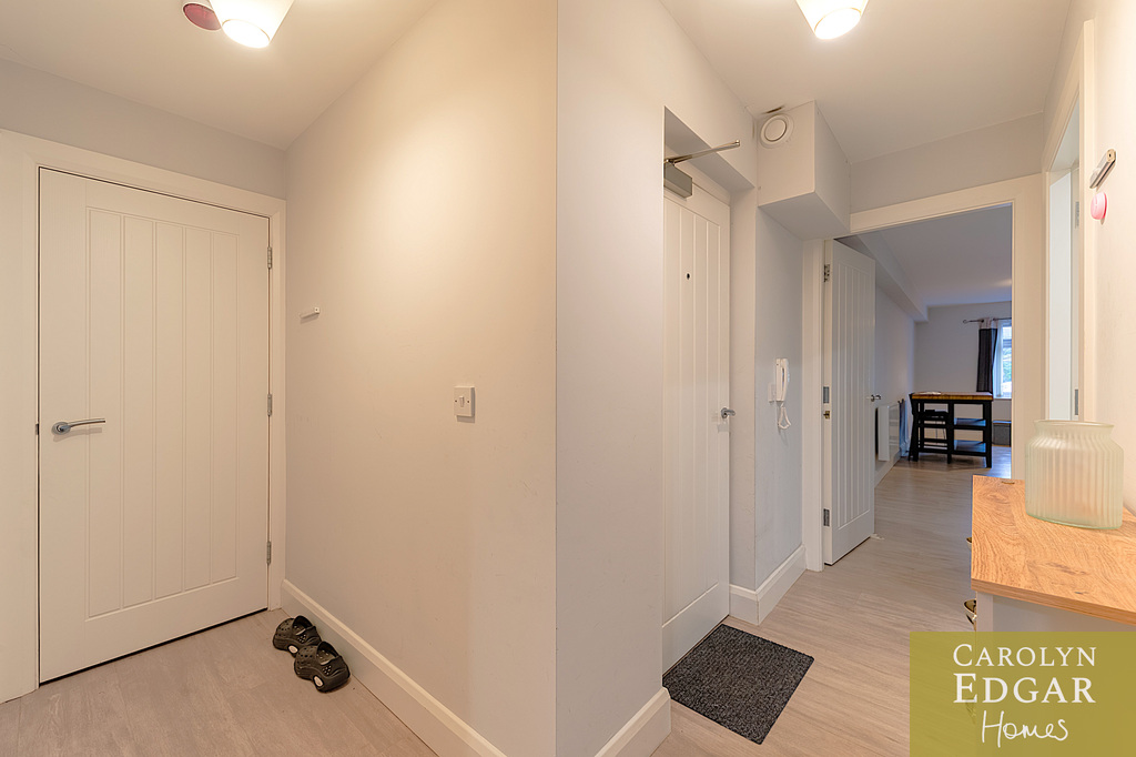 Internally, the property offers well-proportioned and airy accommodation throughout, comprising of entrance hallway with intercom and storage, open plan living area to contemporary fully fitted kitchen with built in appliances and casual dining area, two double bedrooms, one with built-in robes and separate modern bathroom.