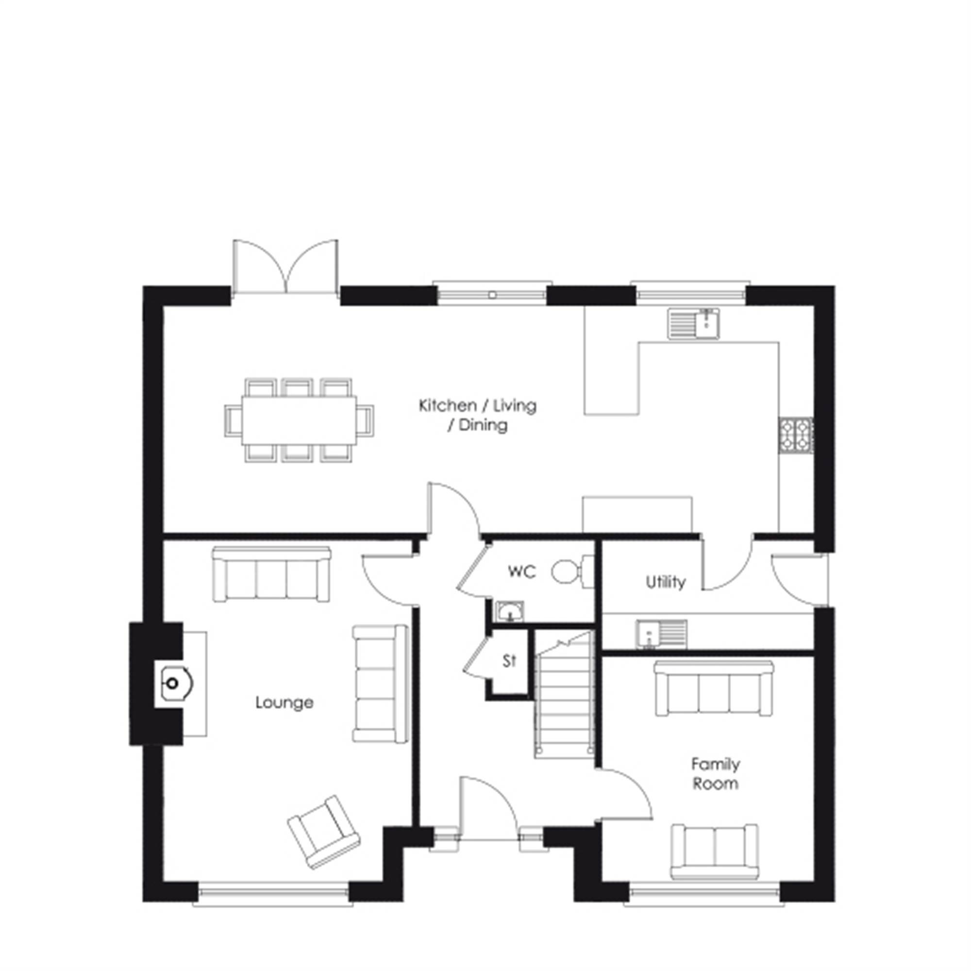 Integrated appliances including built-in oven, electric hob, extractor hood, dishwasher, fridge freezer and washer/dryer (free standing washing machine to utility where applicable)