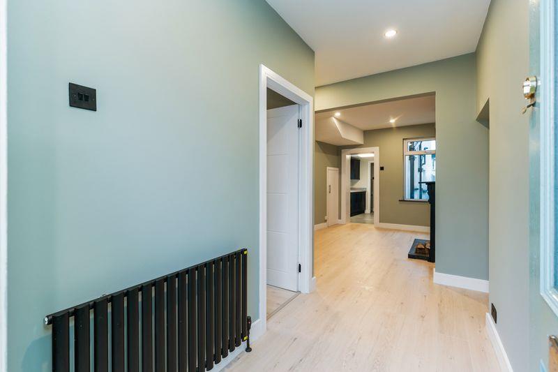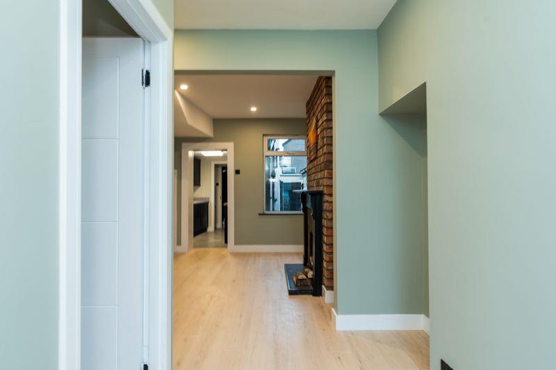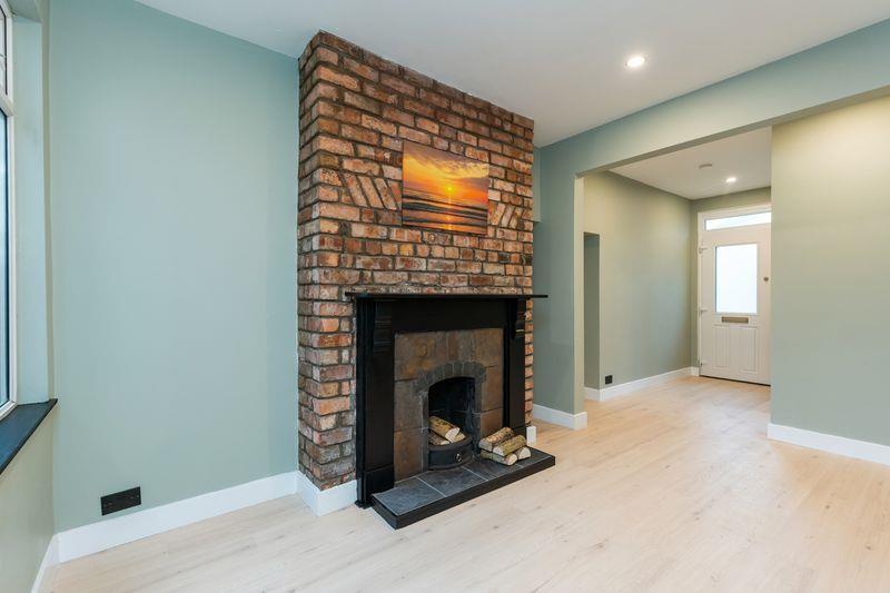 Open fireplace with slate surround and hearth, wood mantel. Understairs storage cupboard. Swiss Krono oak strip flooring. 6 Downlights.