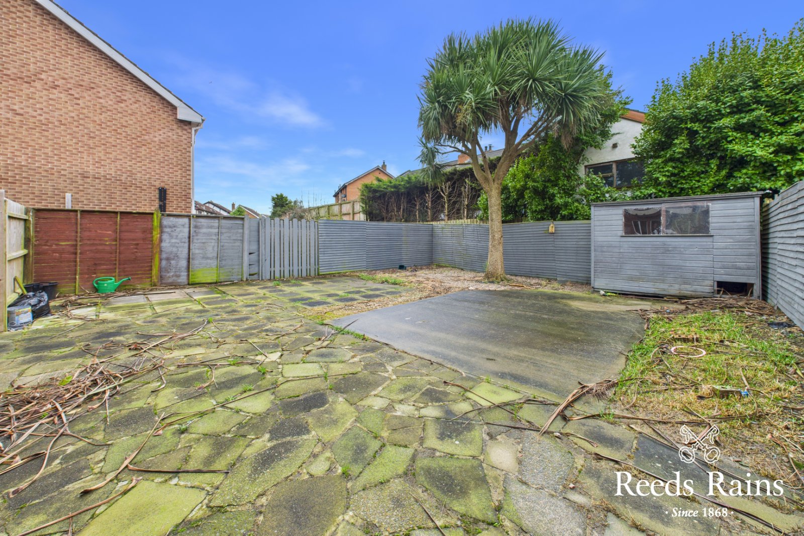 Fully enclosed rear garden, extensive paved patio area, garden shed, outside tap and light.