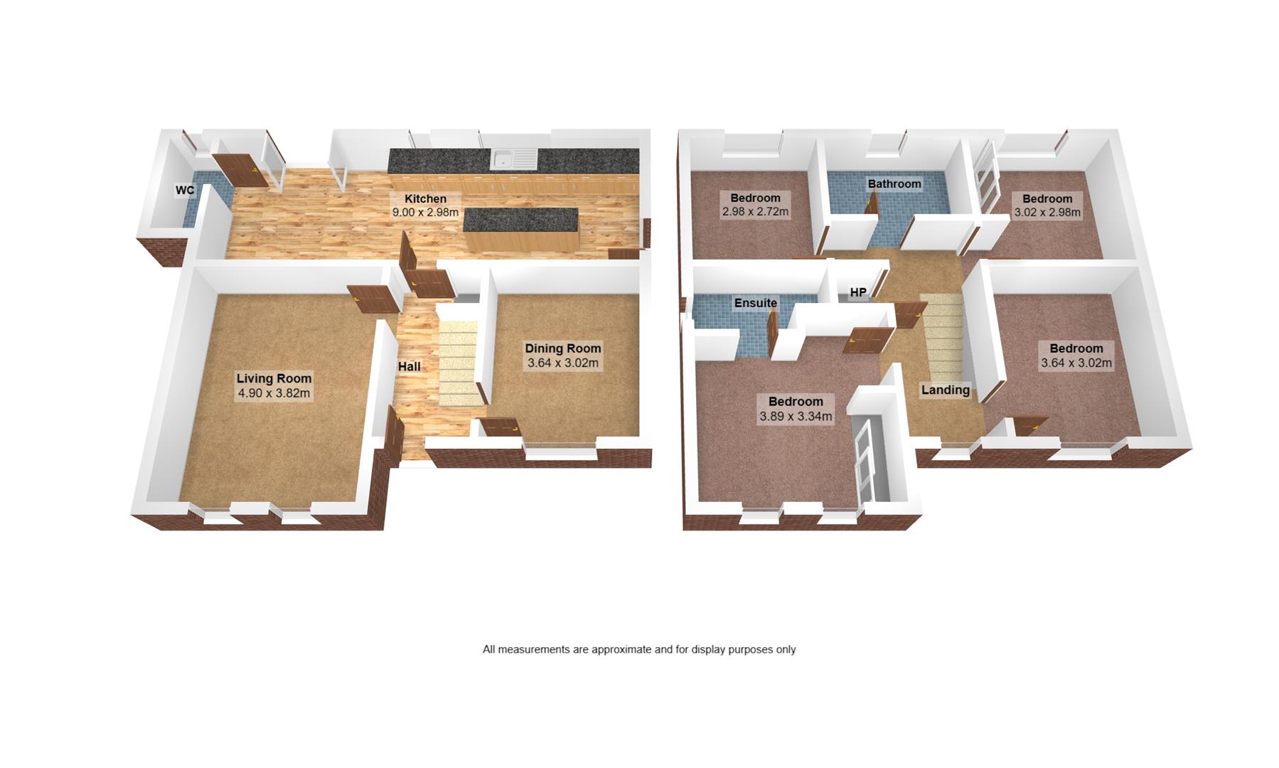 Upstairs, four well-proportioned bedrooms include a principal bedroom with a sleek ensuite shower room. The family bathroom is fitted with a contemporary four-piece suite.