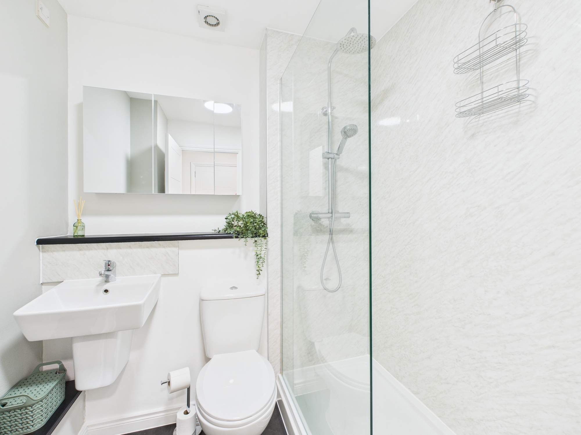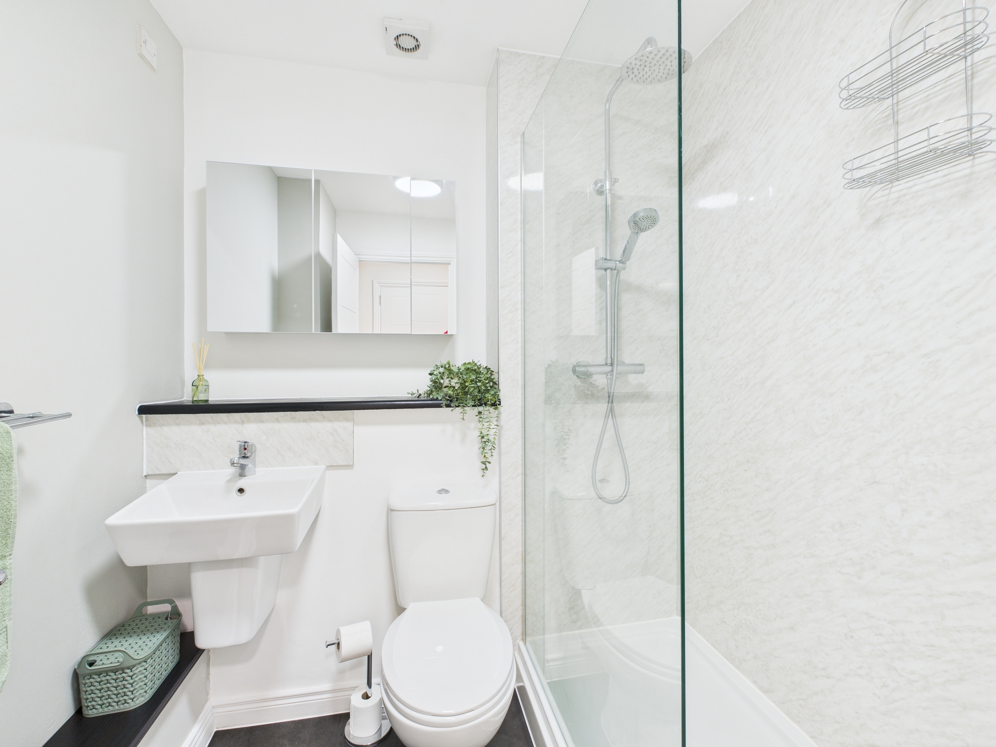 Both bedrooms are well proportioned and benefit from a neutral décor, with the master bedroom featuring convenient access to an ensuite bathroom. The principal bathroom is finished to a high standard, ensuring a functional and inviting space.