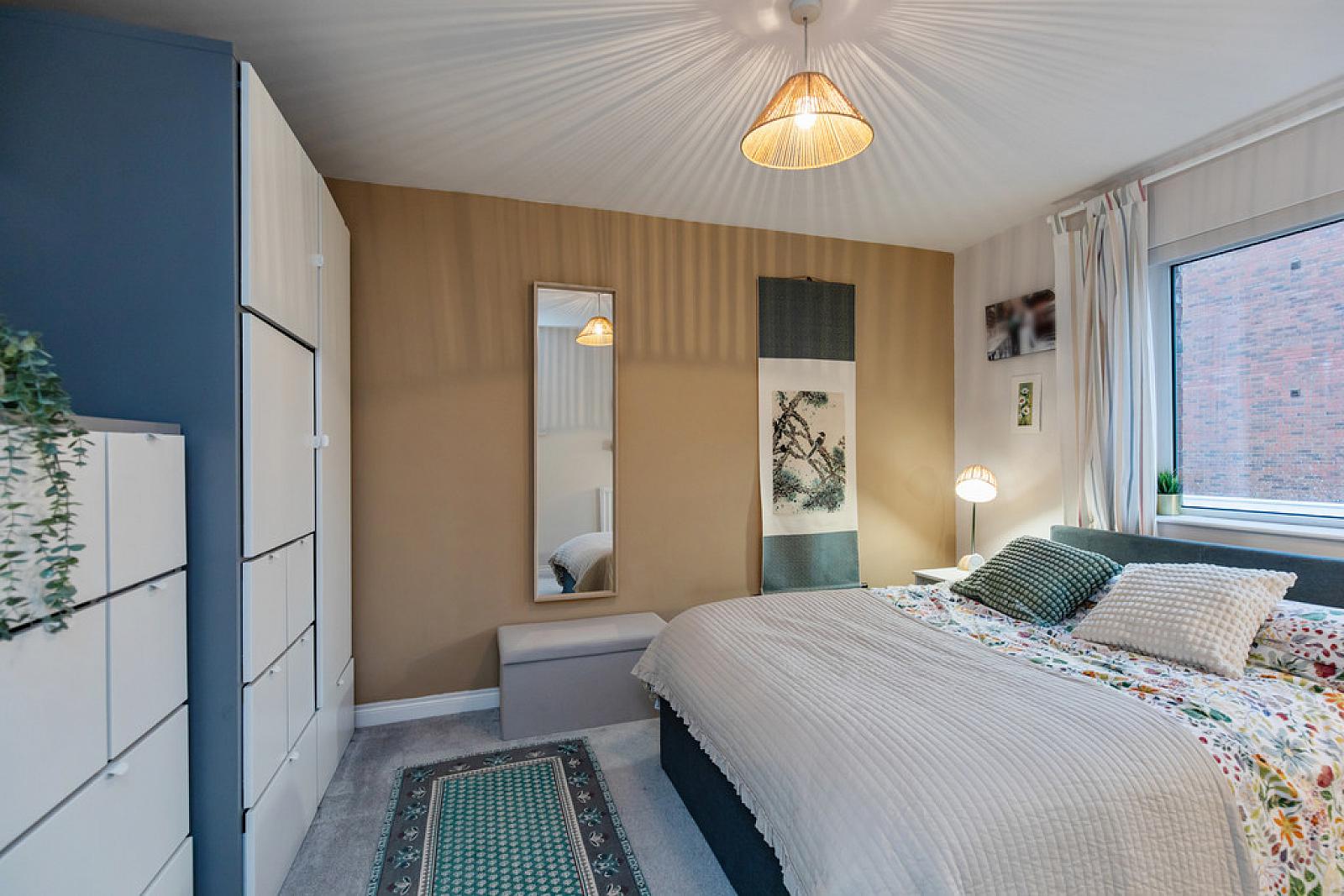 BEDROOM 10' 9" x 8' 9" (3.28m x 2.67m) Storage cupboard with gas fired boiler, glazed sliding doors leading to balcony sitting area.