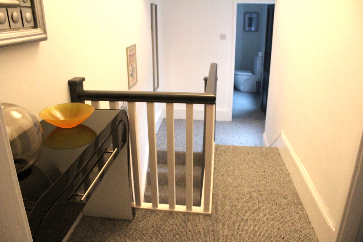 Split level landing. Carpet.