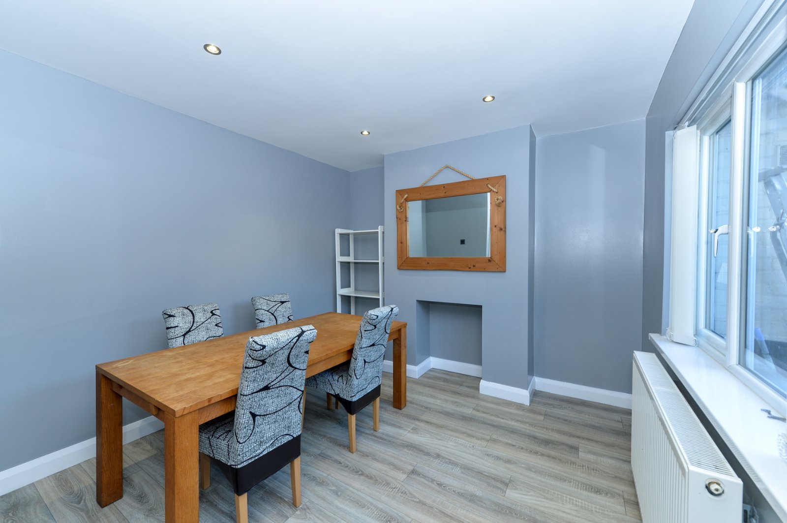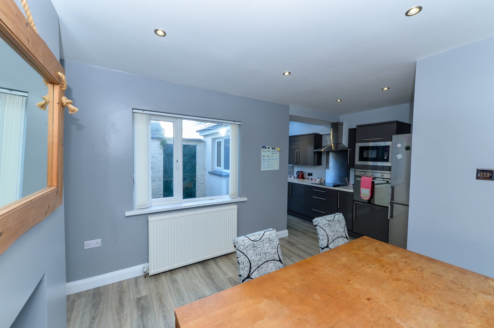 Open Plan to dining room. Laminate flooring. Radiator.
