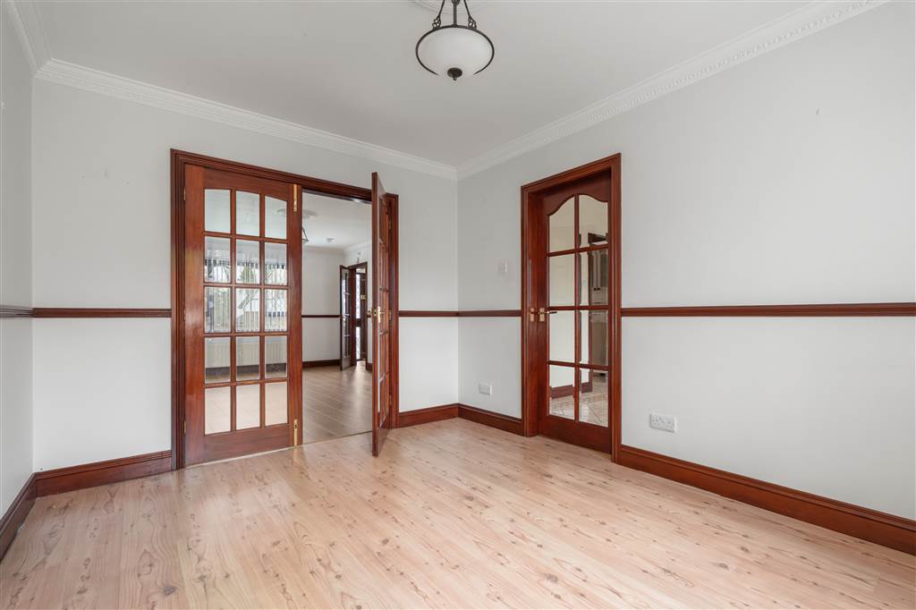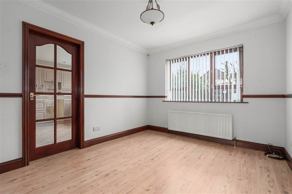 With dado rail. Coving to ceiling. Ceiling rose. Glazed door to kitchen.