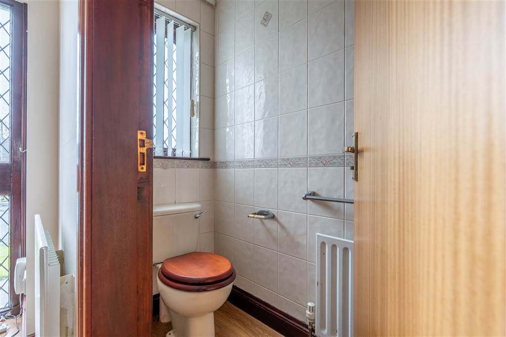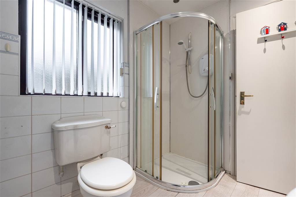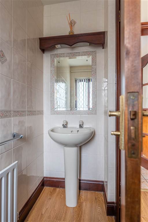 With LFWC and WHB. Tiled walls. Laminated wooden flooring.