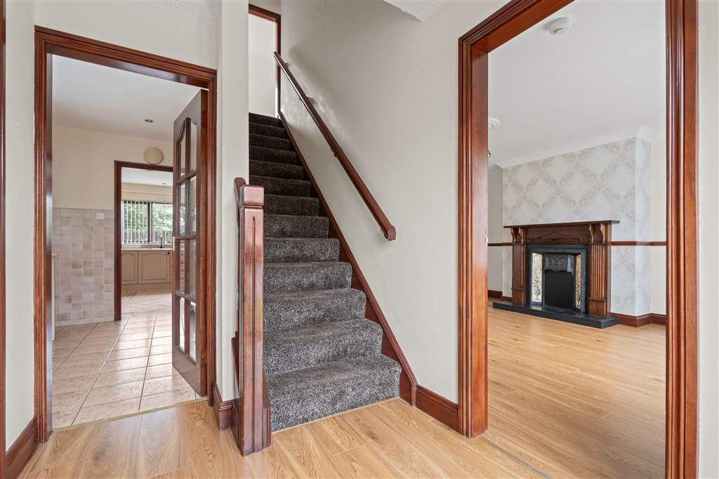 With hardwood front door with glazed panes and glazed side panes. Staircase to first floor. Coving to ceiling. Laminated wooden flooring.
