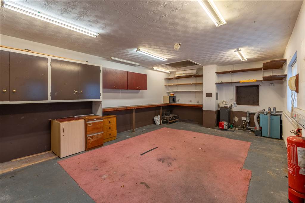 With up and over door. Side pedestrian access. Extensive power points and lighting. Access to loft.