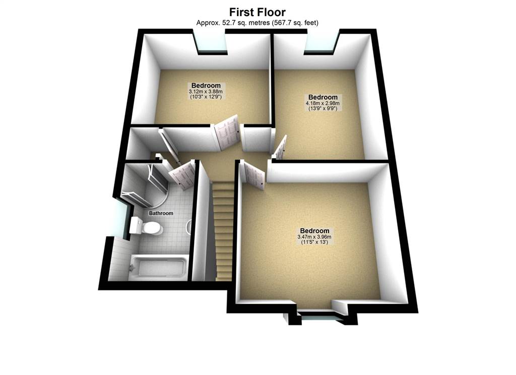 BEDROOM (3): 12' 9" X 10' 3" (3.88m X 3.12m)