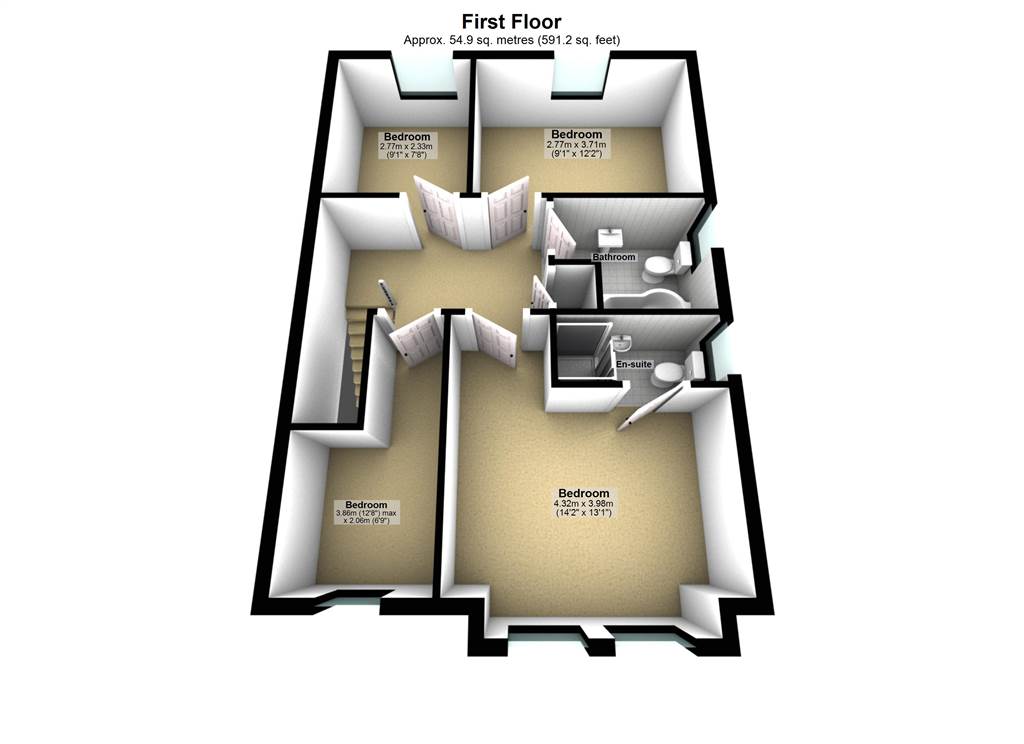 BEDROOM (3): 12' 2" X 9' 1" (3.71m X 2.77m)