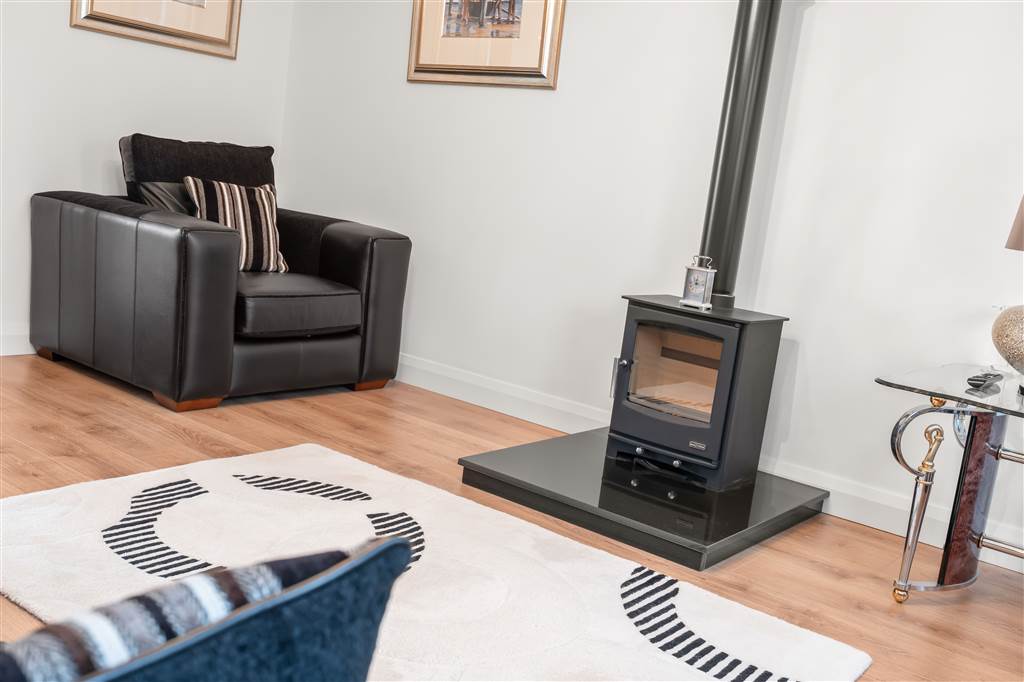 Living room with multi-fuel burning stove