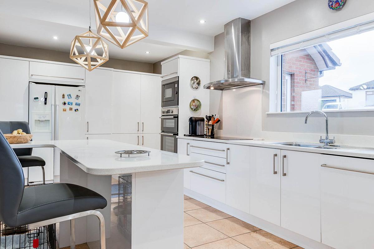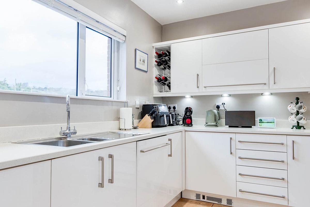 Well appointed kitchen with excellent range of high and low-level units in a gloss finish