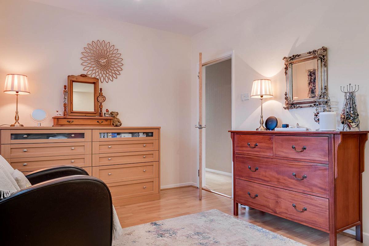 Laminate wood strip floor. Recessed lighting. Excellent range of wall-to-wall 'built in' robes.