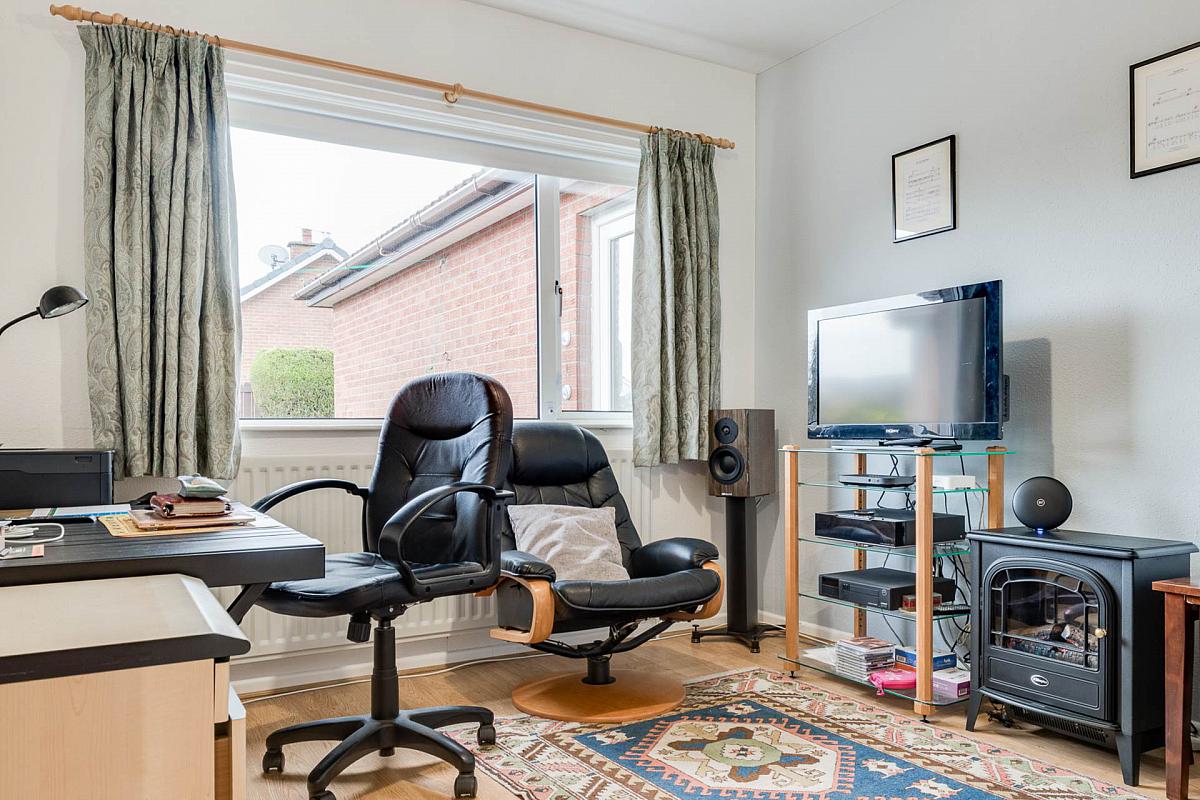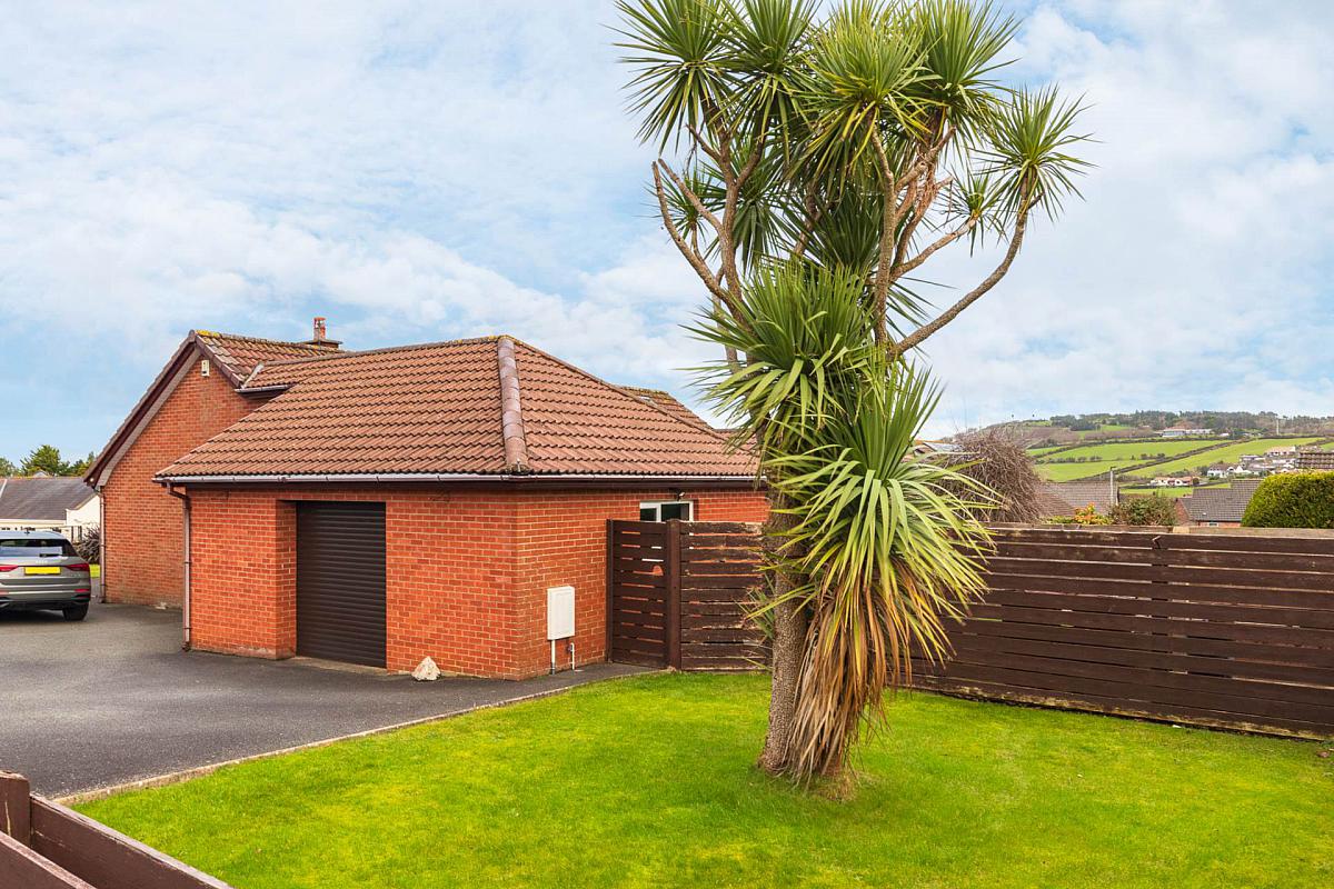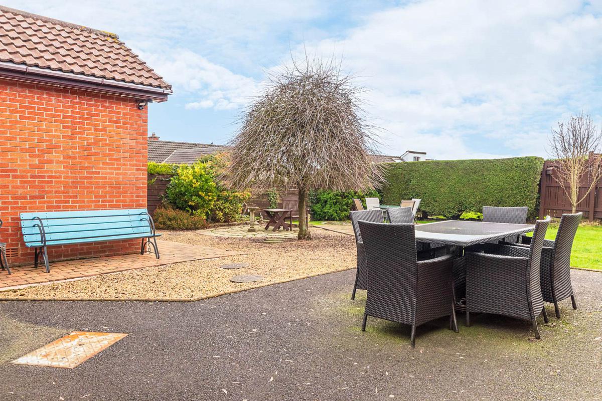 The property is situated on a spacious corner site that overlooks Bentra golf course and laid out in neat lawns to front, side and rear with paved patio areas and a variety of trees and shrubs and bounded by fencing. Bitmac driveway and ample parking space for several cars.