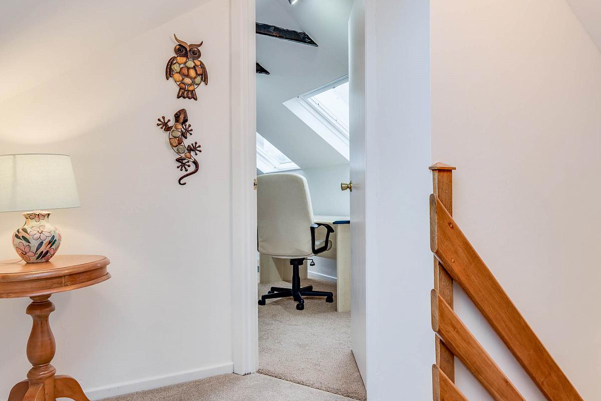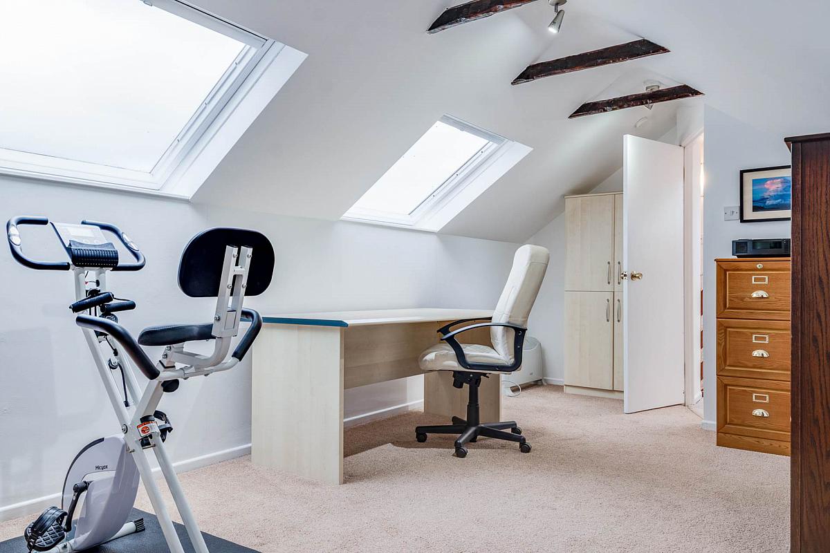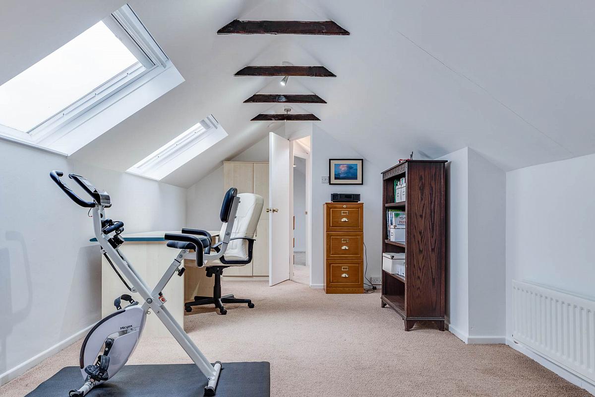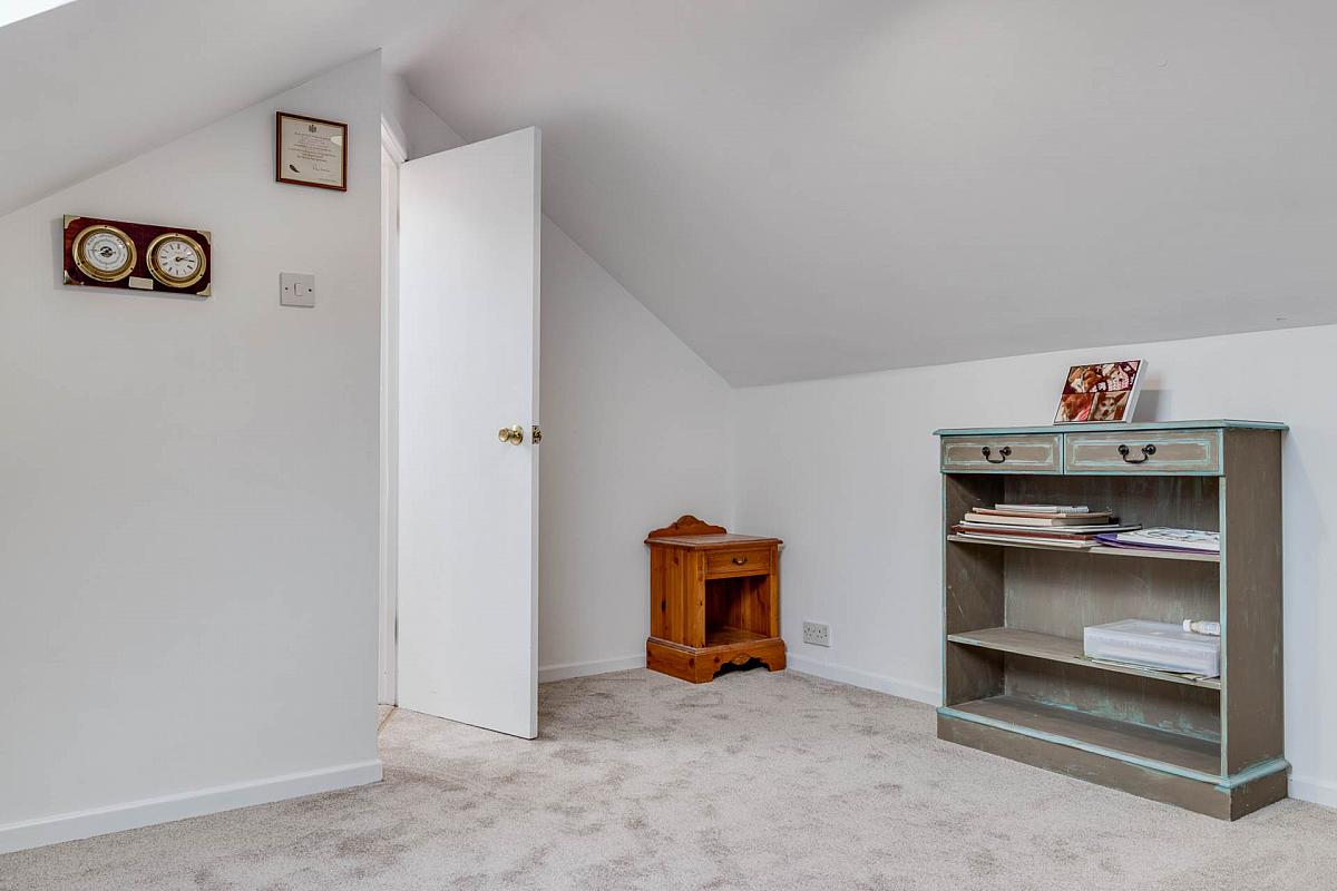 Twin Velux windows. Partly exposed timber beams. Door to large storeroom 3.06 x 2.8 and with access to eaves storage.