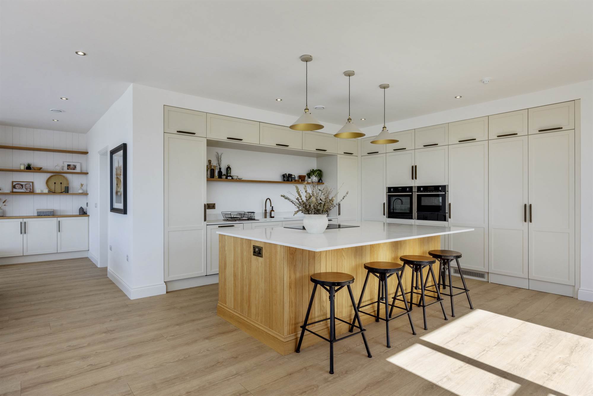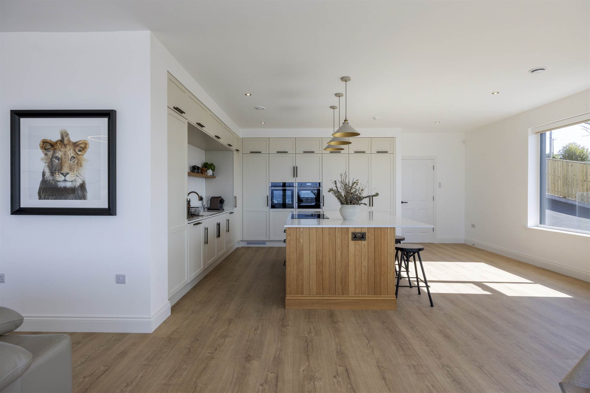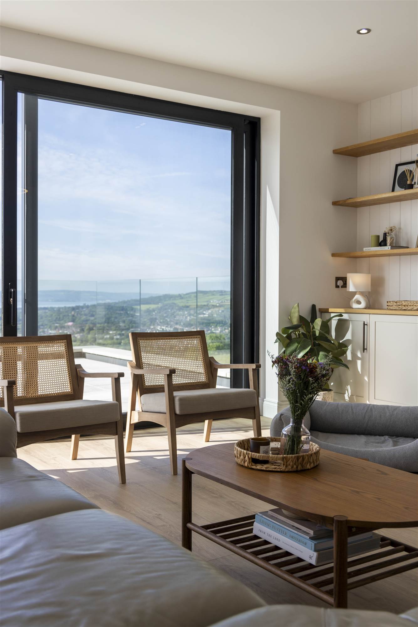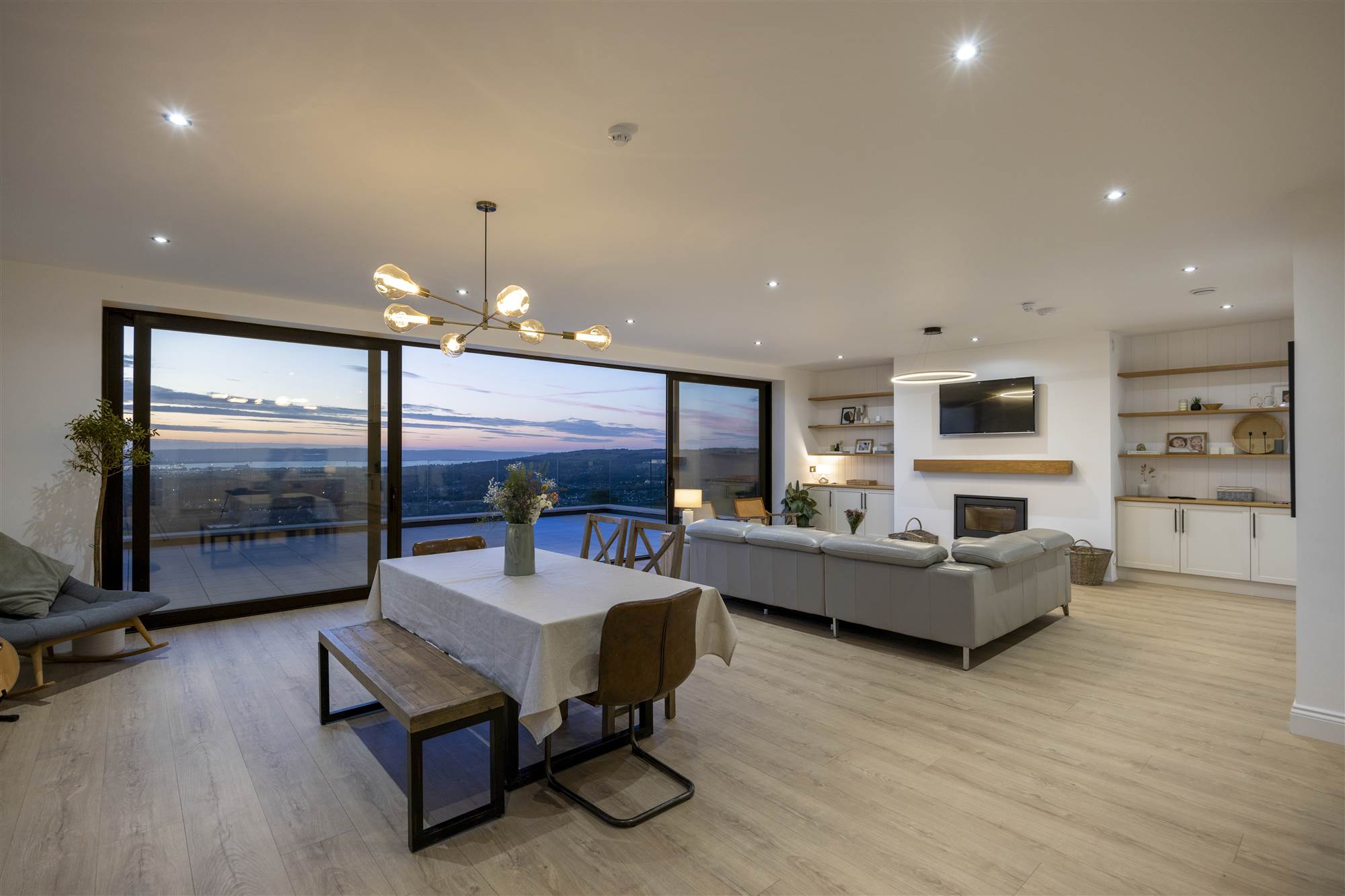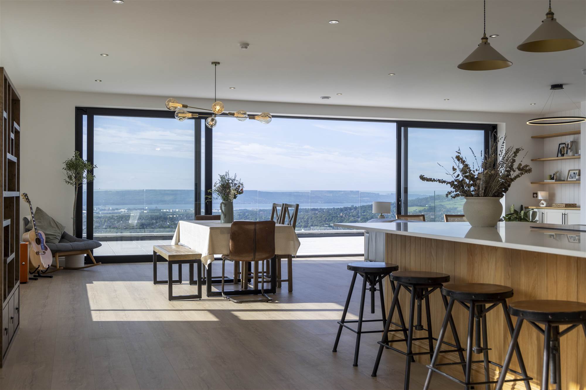 The kitchen is open to the lounge dining area with a 25ft glazed opening with sliding door maximising the breath-taking views and providing access to the veranda / patio area that over looks the garden.