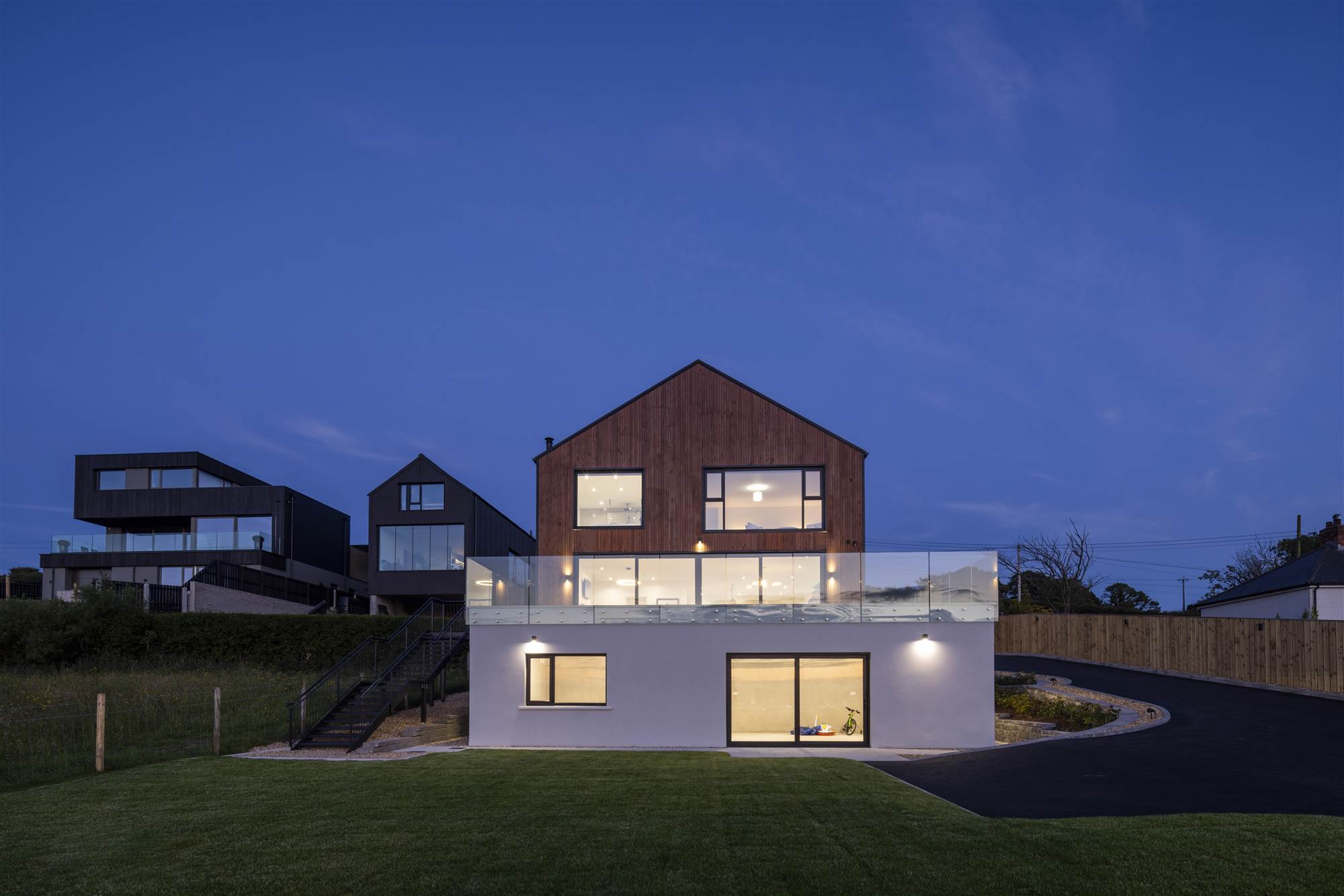 From the Kitchen dining living area access is provided to the veranda seating area with glazed balustrade so as not to interrupt the views. Steps to the side lead down to the garden laid in lawns.