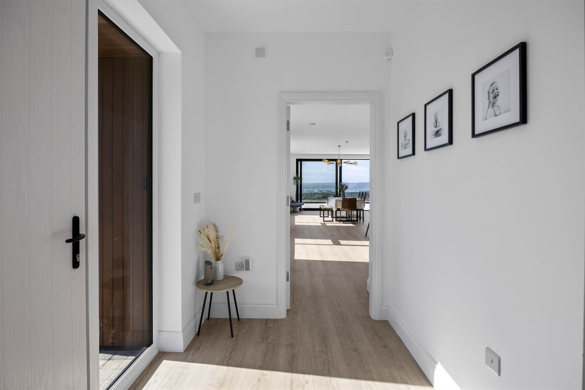 As soon as you come through the electric gates the reason for this homes position starts to become apparent and when you enter the kitchen / dining/ living area, the view simply takes your breath away as its captured in the glazed floor to ceiling opening. The kitchen is finished in a shaker style with 'Quartz' work surfaces with matching centre island in contrasting colour, built appliances to include full fridge, full freezer, double oven and warming drawer, Quooker Boiling Water Tap, and integrated dishwasher. One of the best features of this kitchen is the hidden walk-in pantry with a range of units shelving, automatic lighting, and even a sliding ladder for those hard to reach places. Also on the ground floor there are three further reception areas, a downstairs w/c and a utility / boot room with fully tiled dog bath with hand shower attachment. Upstairs the master bedroom and en-suite bathroom also benefits from the breath-taking views with the free standing bath perfectly positioned to capture the view, whilst having the electronically controlled blinds for privacy. There are three further double bedrooms and a luxurious family bathroom also on this level. On the lower ground floor there is an area measuring 36'6 x 17'7, that can utilised in a number of ways depending on your individual requirements.