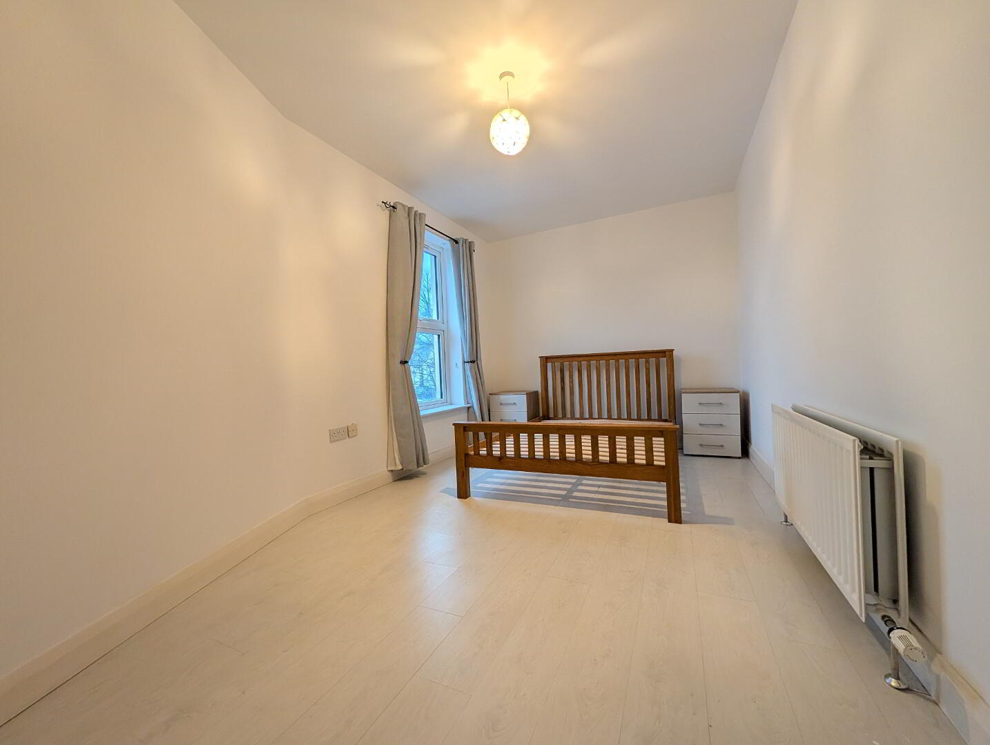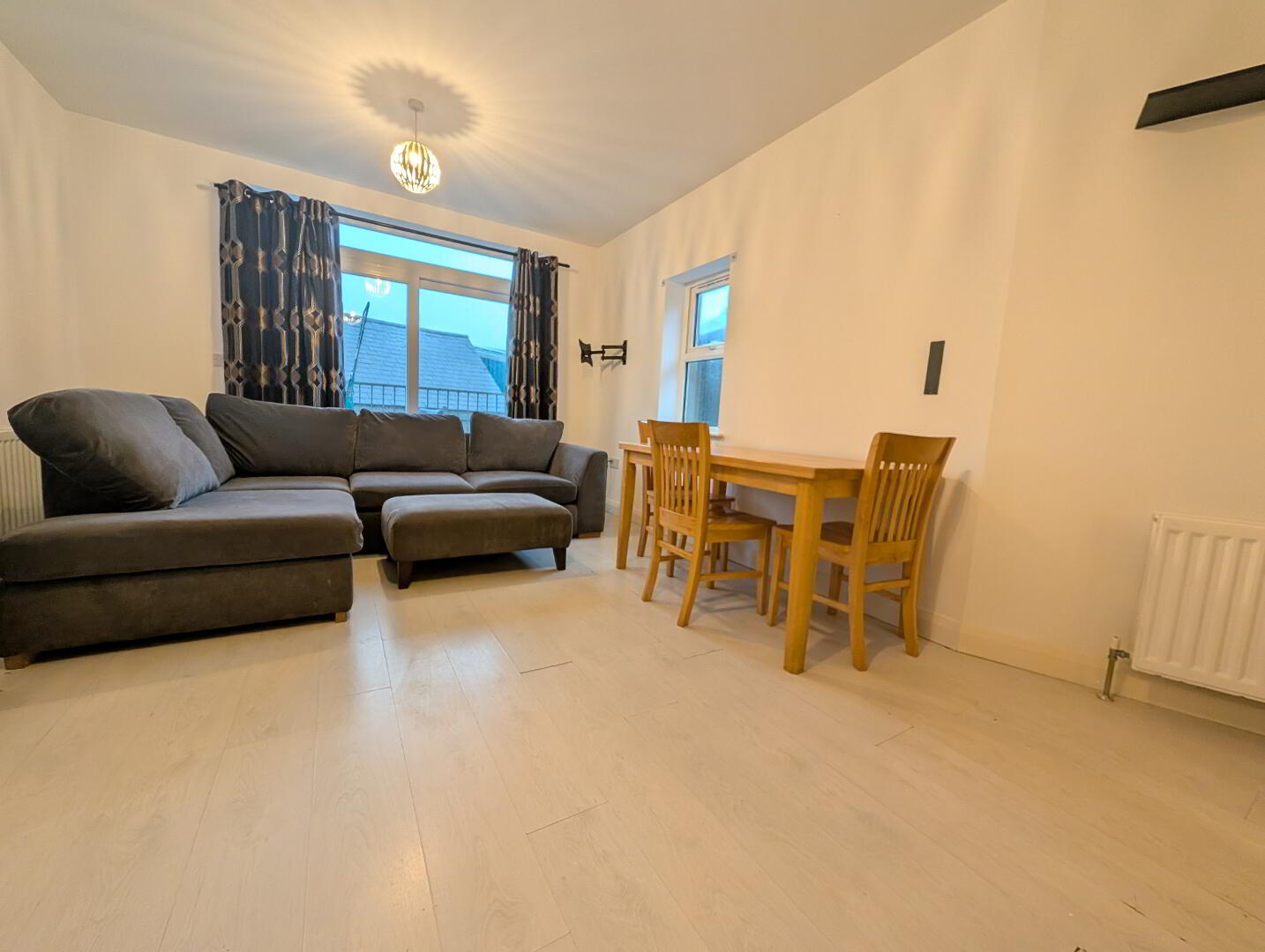 Living Area - Wooden effect floor, sliding French doors onto balcony, TV point