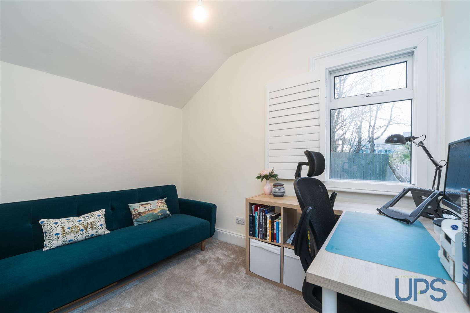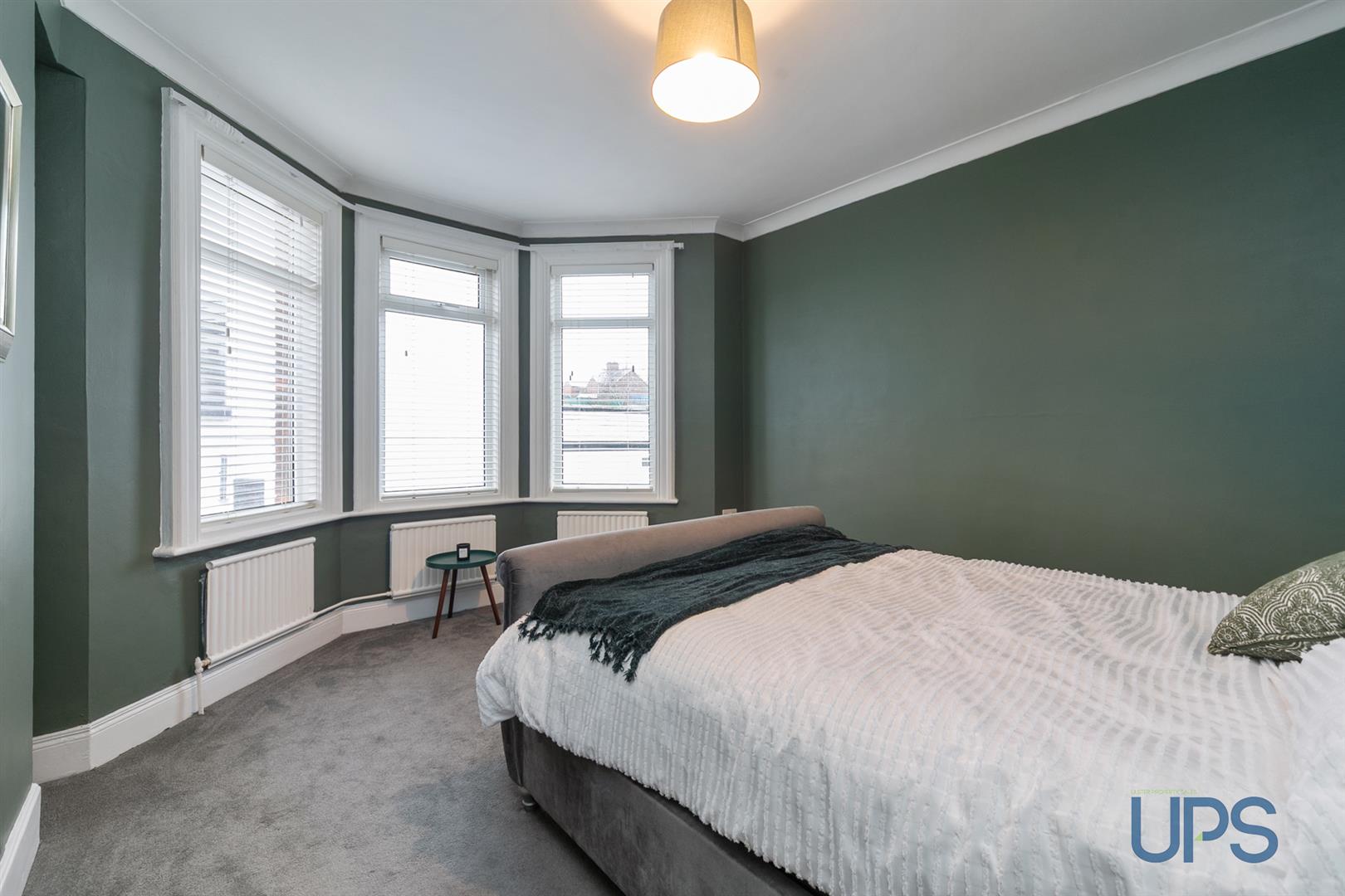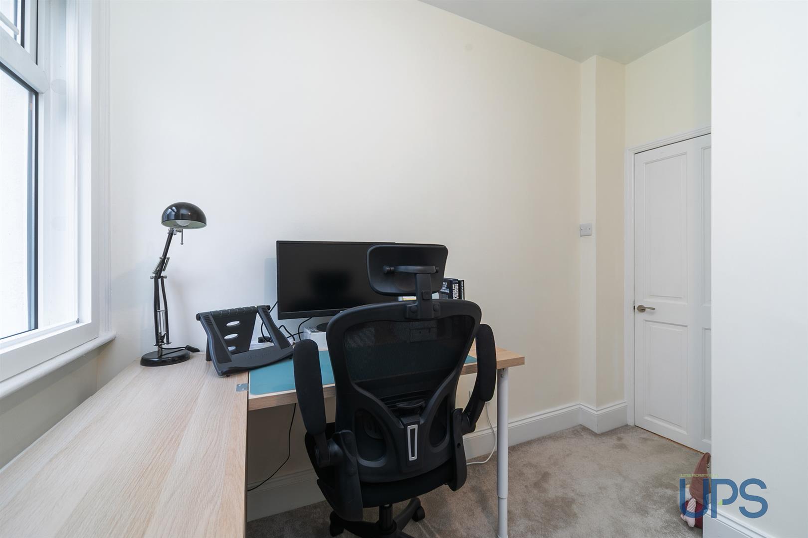 Cornice ceiling, herringbone wood laminate floor, panelled radiator.
