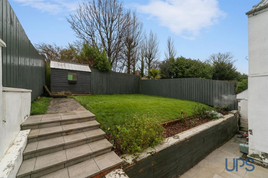 Mature gardens front, side and rear in lawns, shrubs, flowerbeds and hedging, extensive patio areas with raised flower beds, outside light and tap.