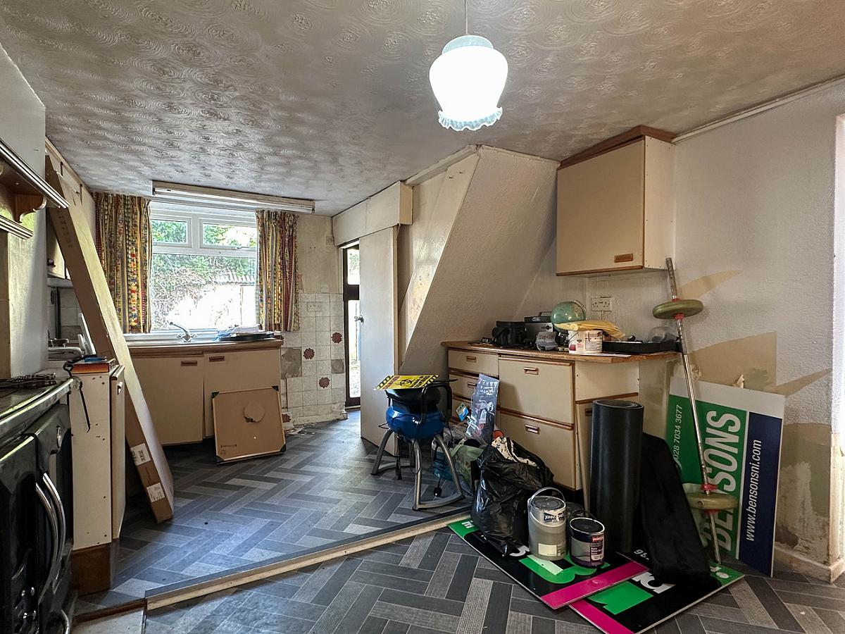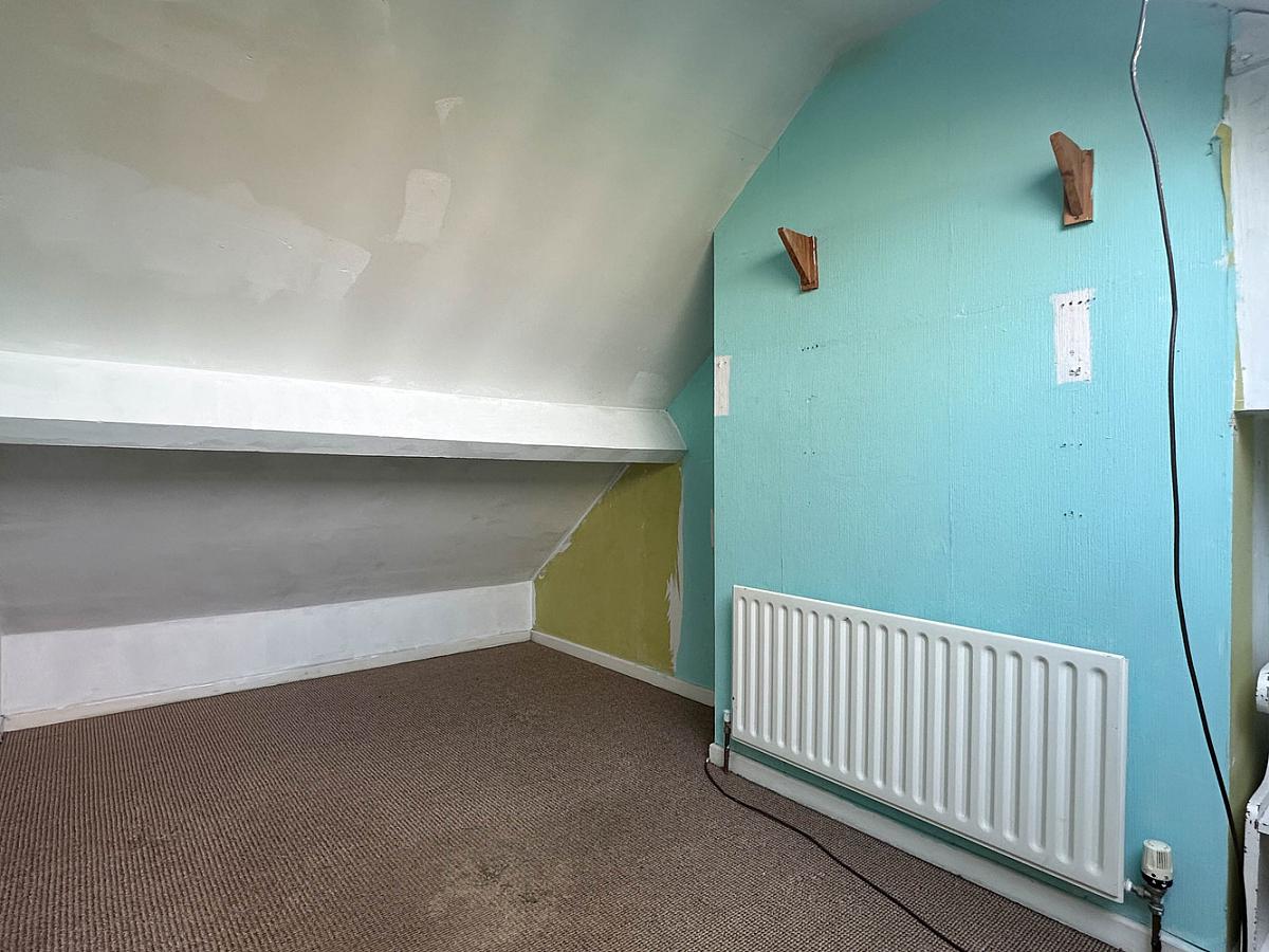 Mid terrace chalet bungalow, 3 rooms, 1 reception room, uPVC double glazed windows, plumbed with radiators for heating, store at the rear of the property, in need of renovation / modernisation.